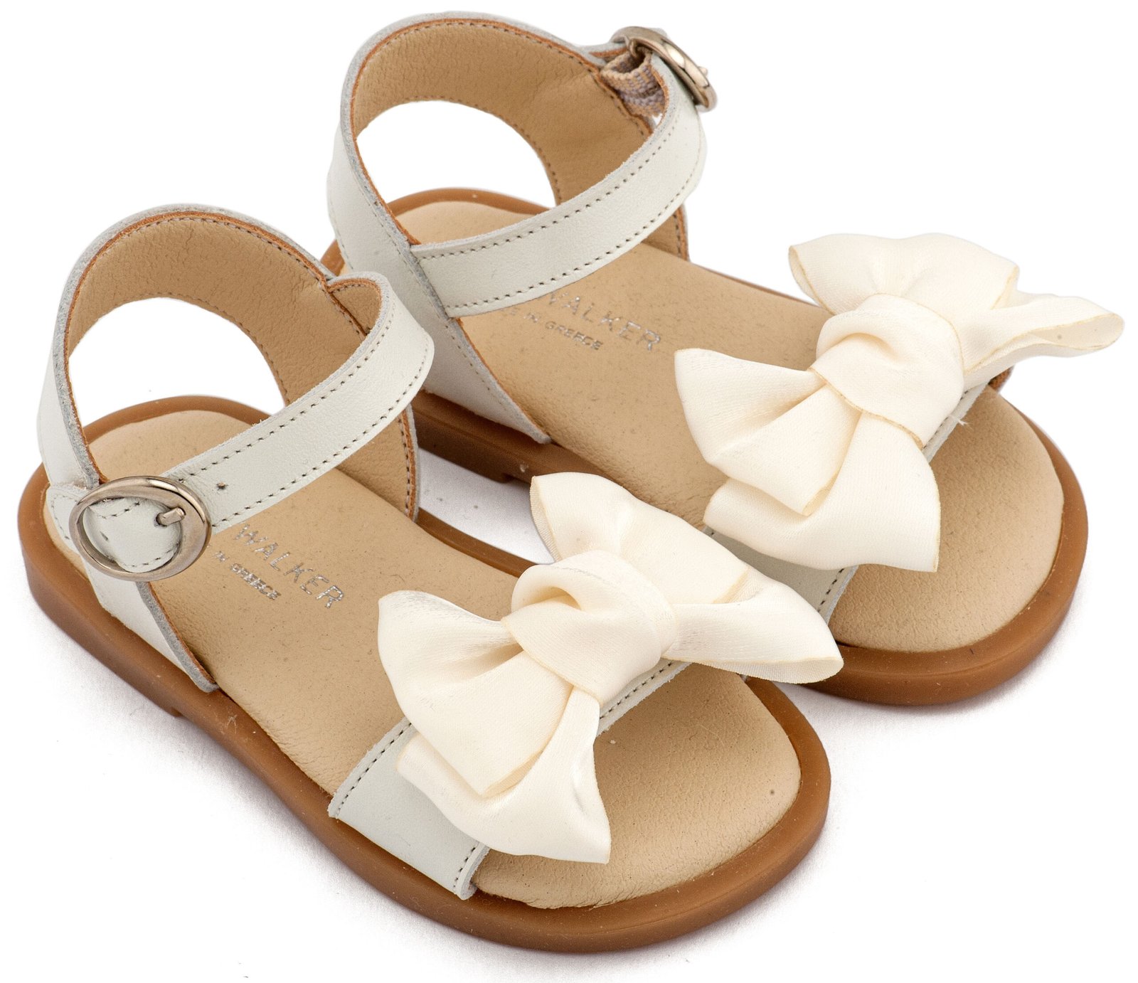 Δερμάτινο Πέδιλο Διακοσμημένο με Χειροποίητο Φιόγκο Οργάντζας και Πέρλες σε Εκρού Χρώμα