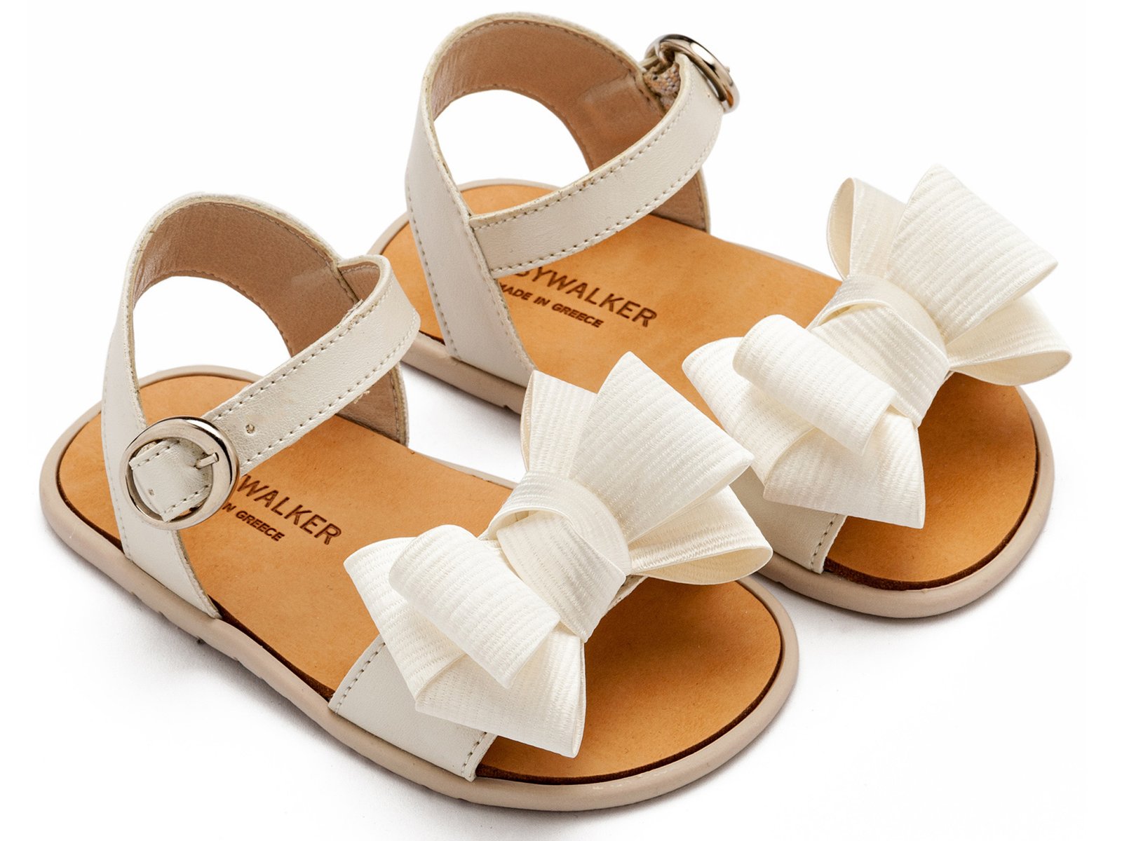 Πέδιλο Διακοσμημένο με Μεγάλο Υφασμάτινο Φιόγκο από Συνθετικό Δέρμα σε Έκρού Χρώμα
