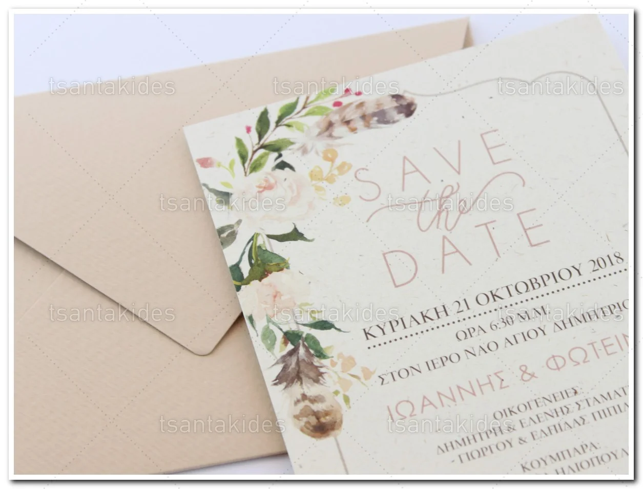 Προσκλητήριο γάμου εκτυπωμένο με θέμα  Floral Save The Date
