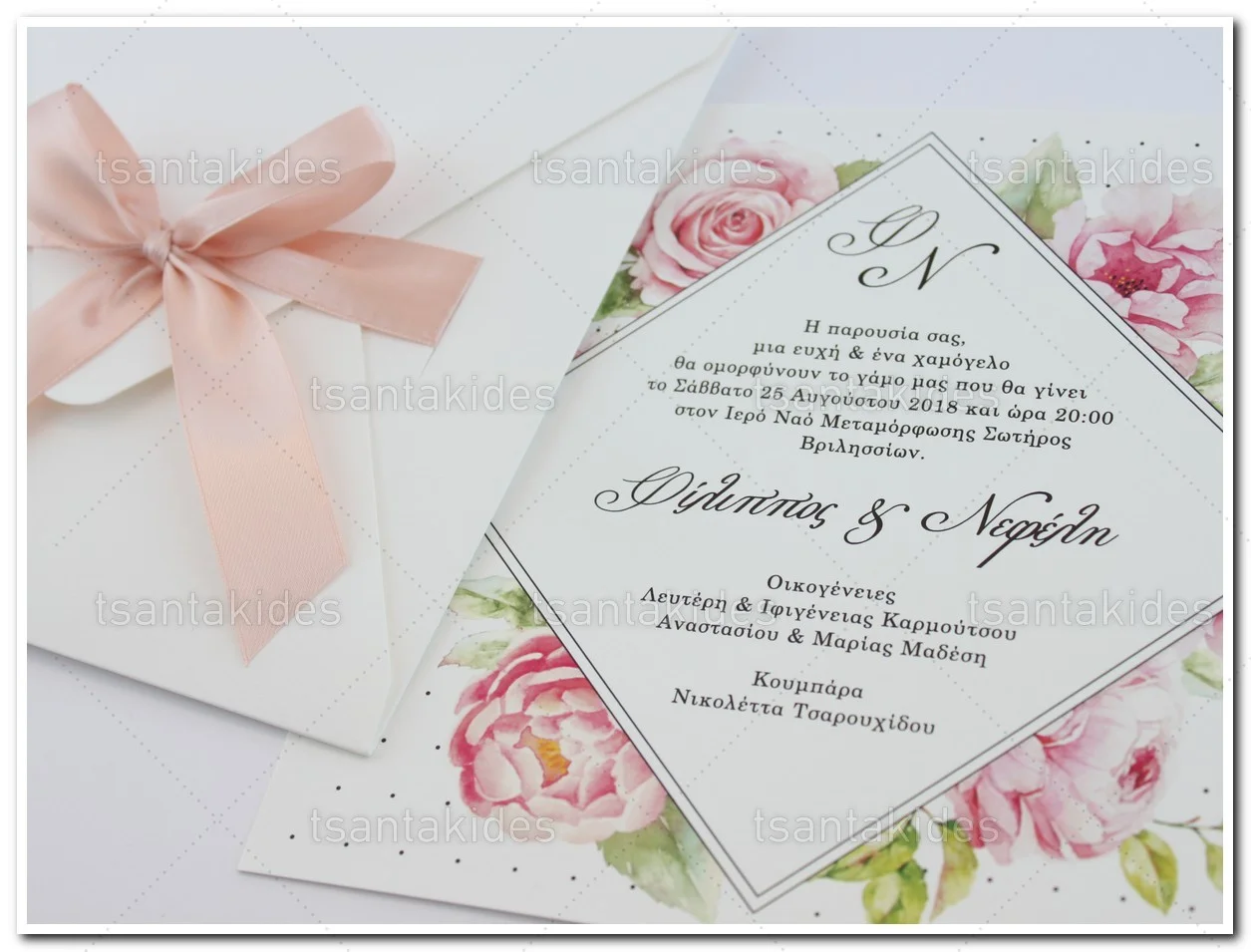 Προσκλητήριο γάμου εκτυπωμένο με θέμα Floral
