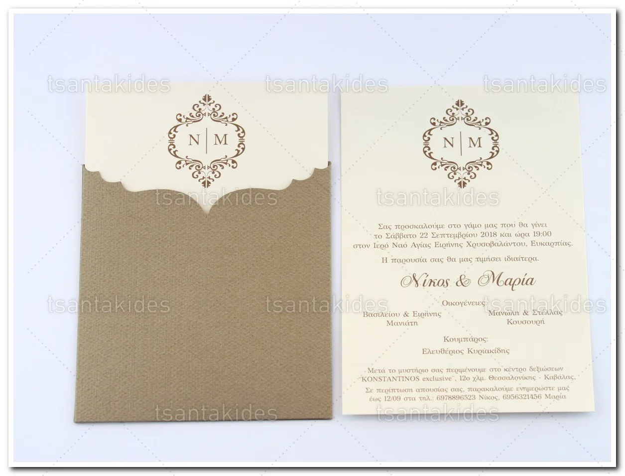 Προσκλητήριο γάμου εκτυπωμένο με θέμα Monograms