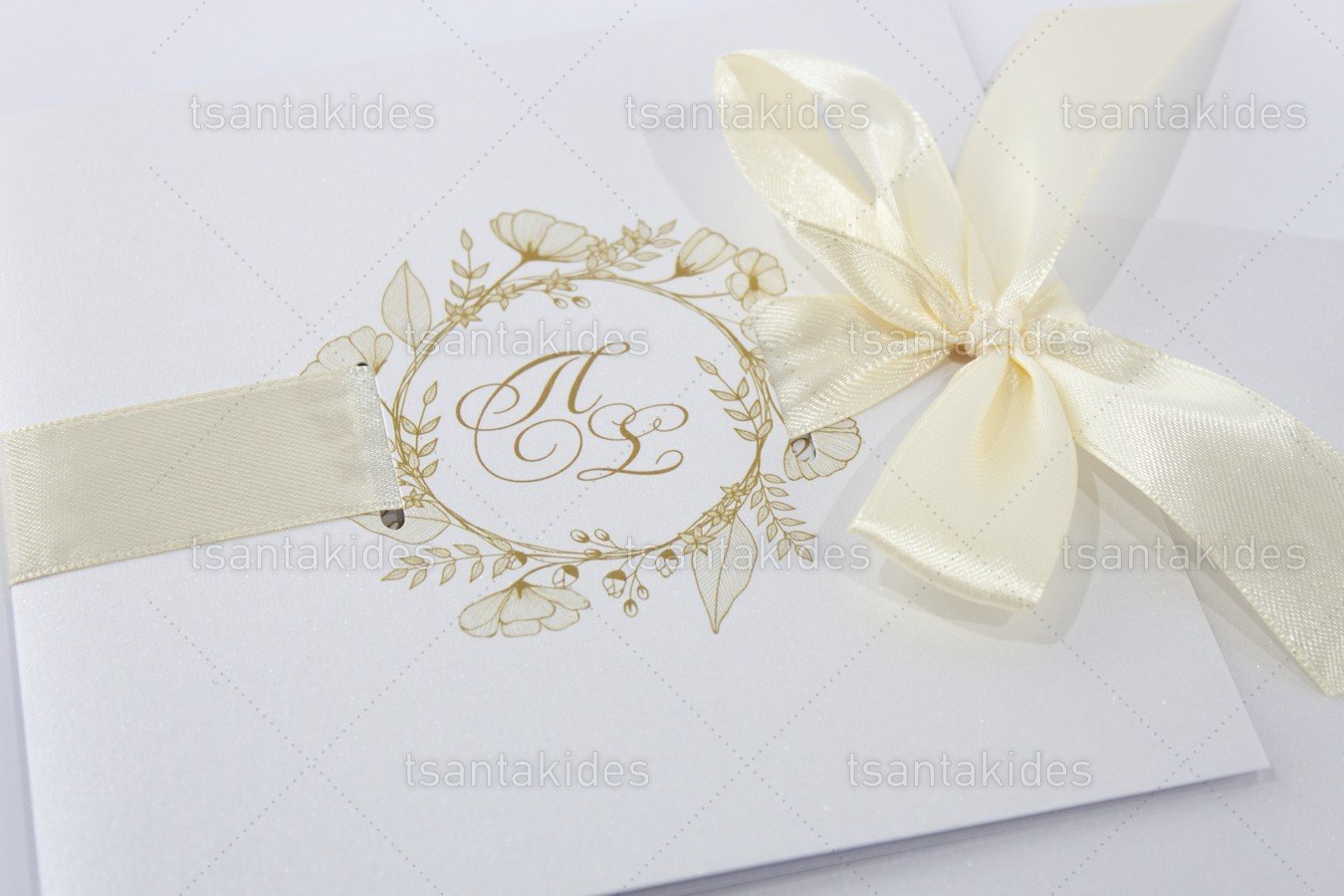 Προσκλητήριο γάμου εκτυπωμένο με θέμα Στεφάνι