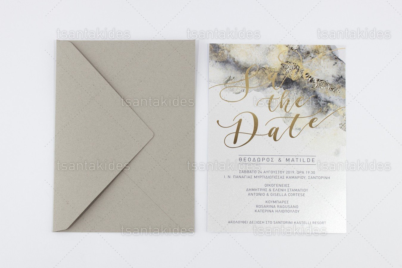 Προσκλητήριο γάμου εκτυπωμένο με θέμα  Save the date