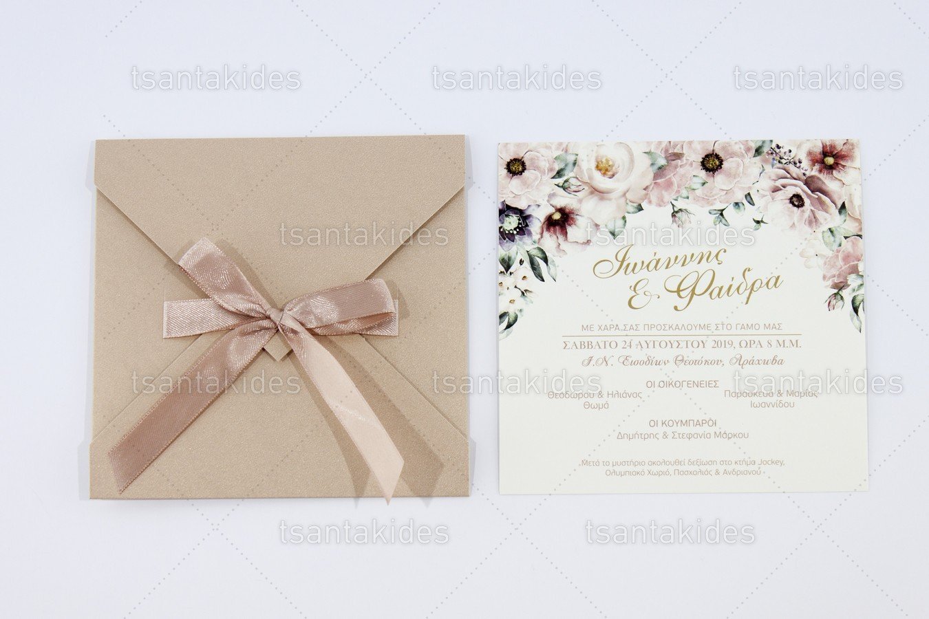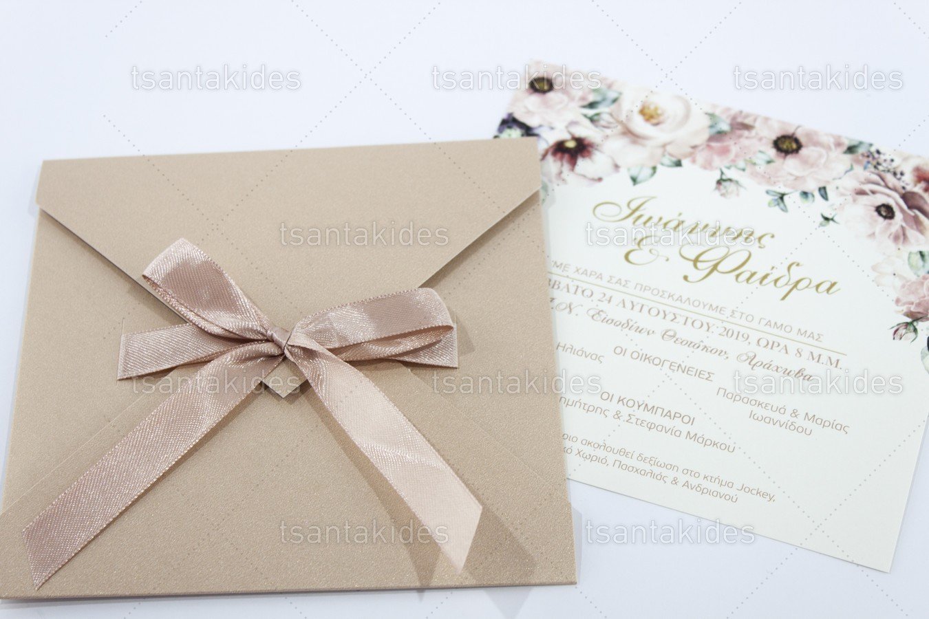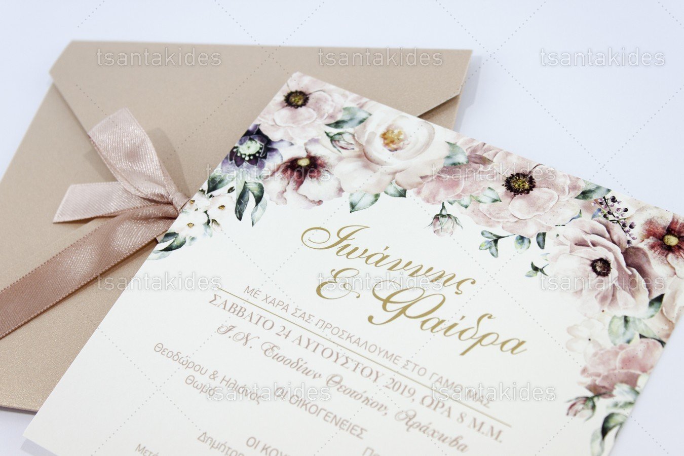 Προσκλητήριο γάμου εκτυπωμένο με θέμα Λουλούδια