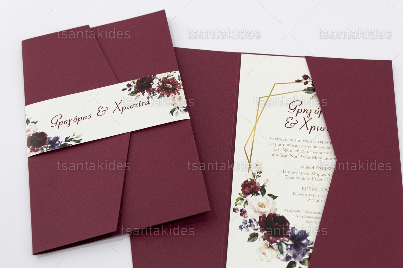 Προσκλητήριο γάμου εκτυπωμένο με θέμα Red Field Flowers