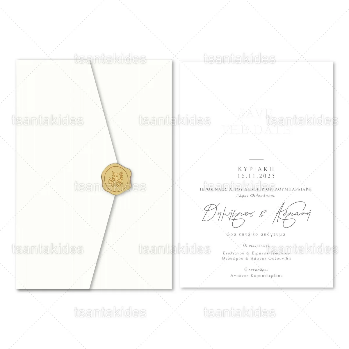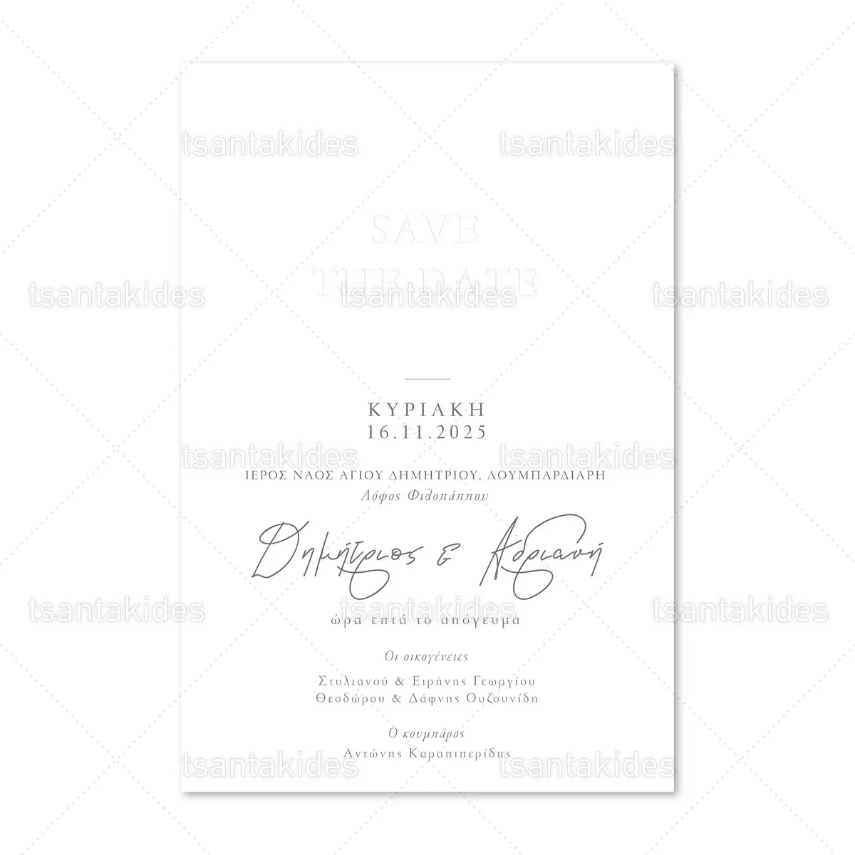 Προσκλητήριο γάμου εκτυπωμένο με θέμα Save The Date