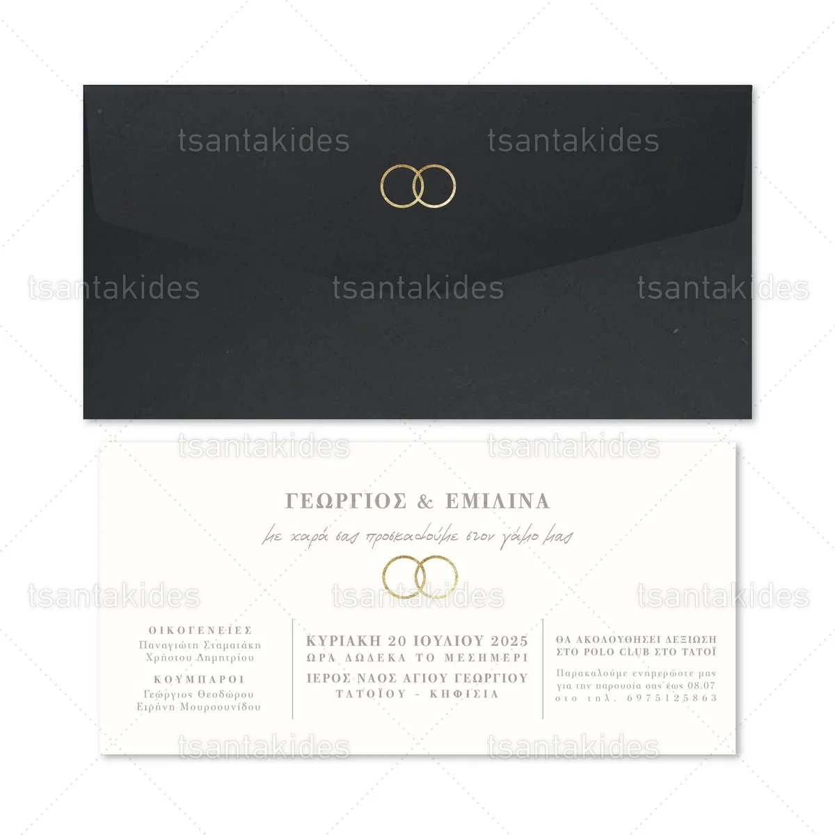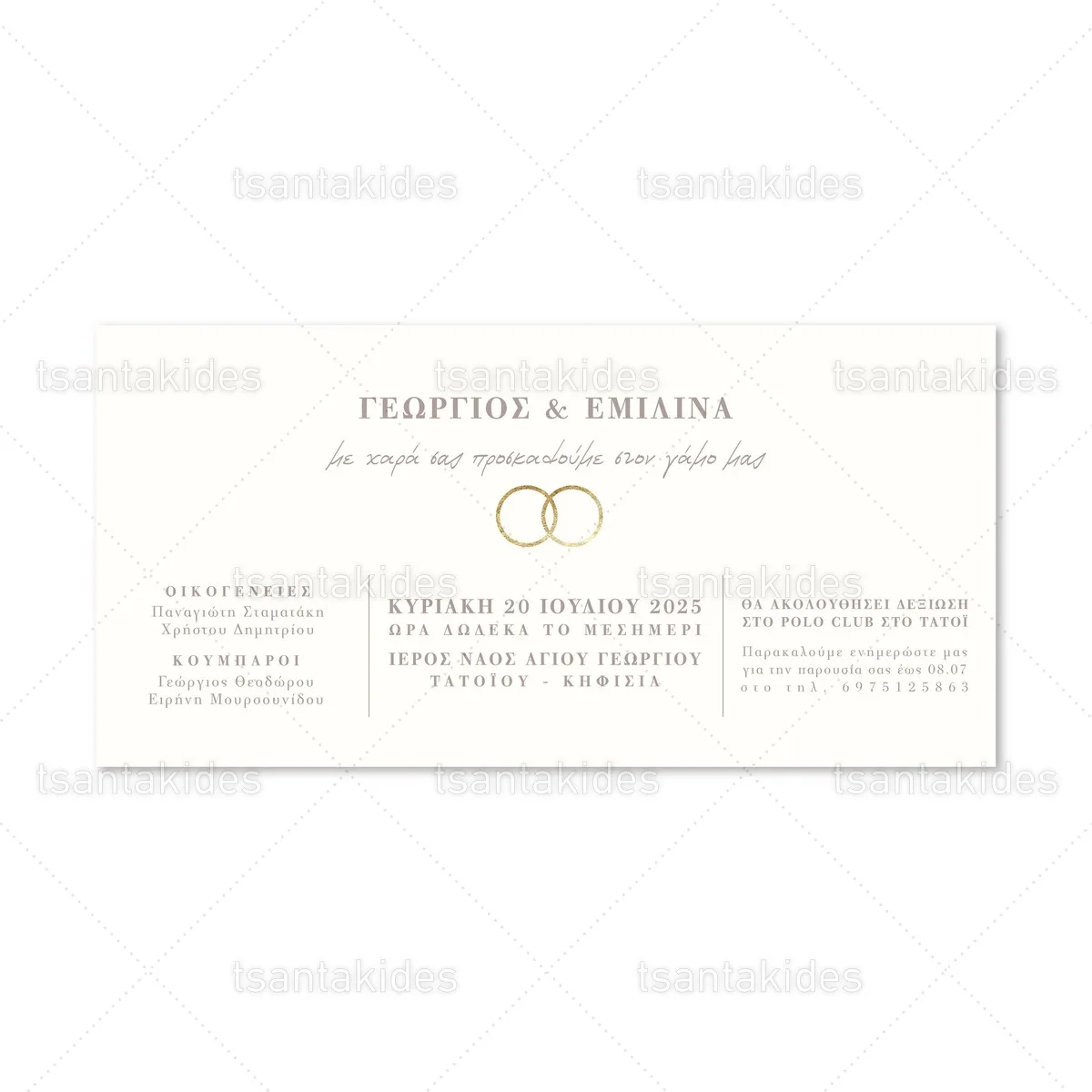 Προσκλητήριο γάμου εκτυπωμένο με θέμα Wedding Rings