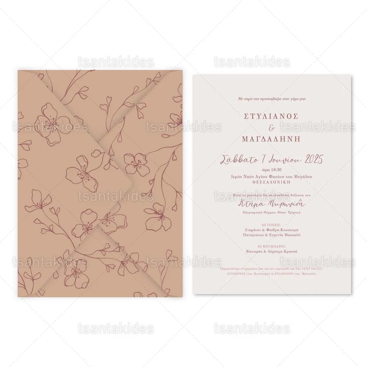 Προσκλητήριο γάμου εκτυπωμένο με θέμα Line Art Cherry Blossom