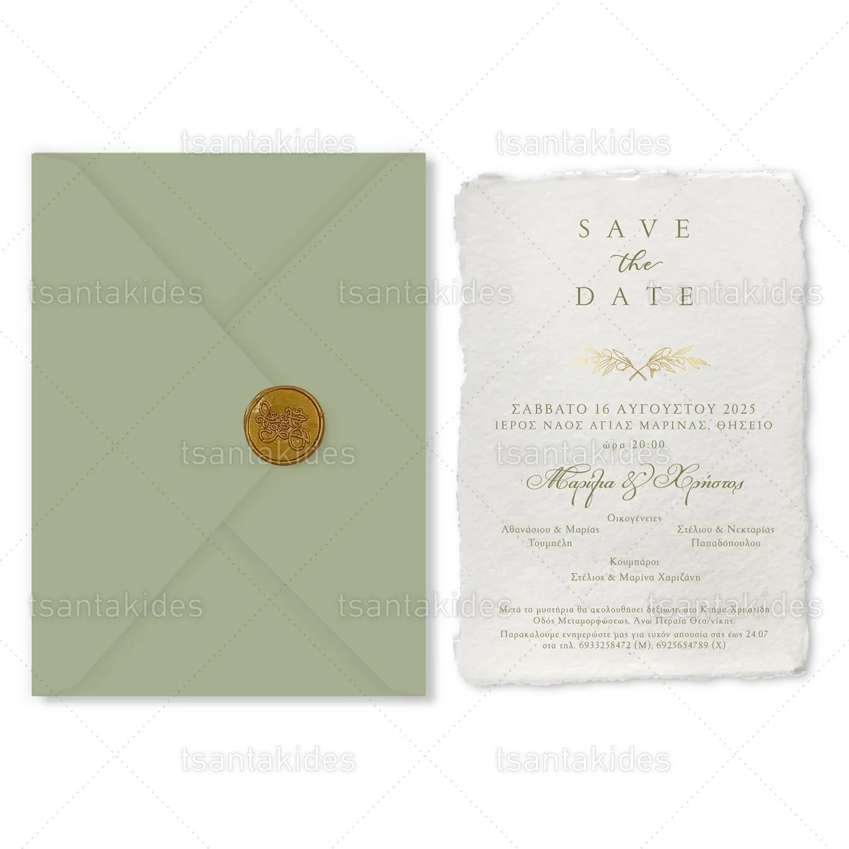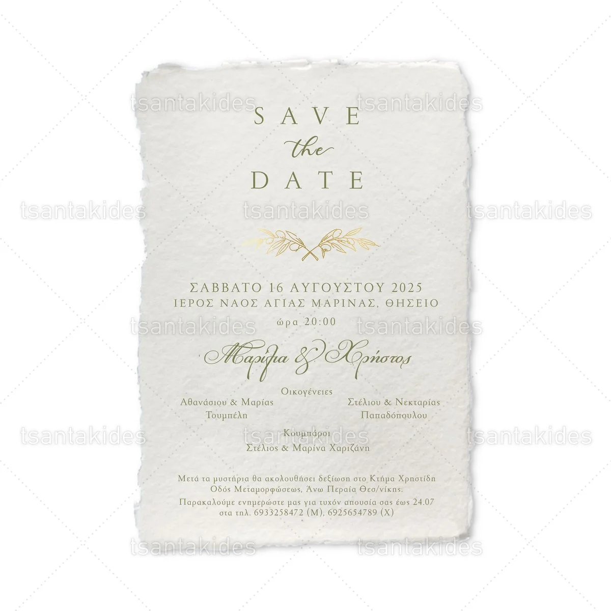 Προσκλητήριο γάμου εκτυπωμένο με θέμα Olive Branch