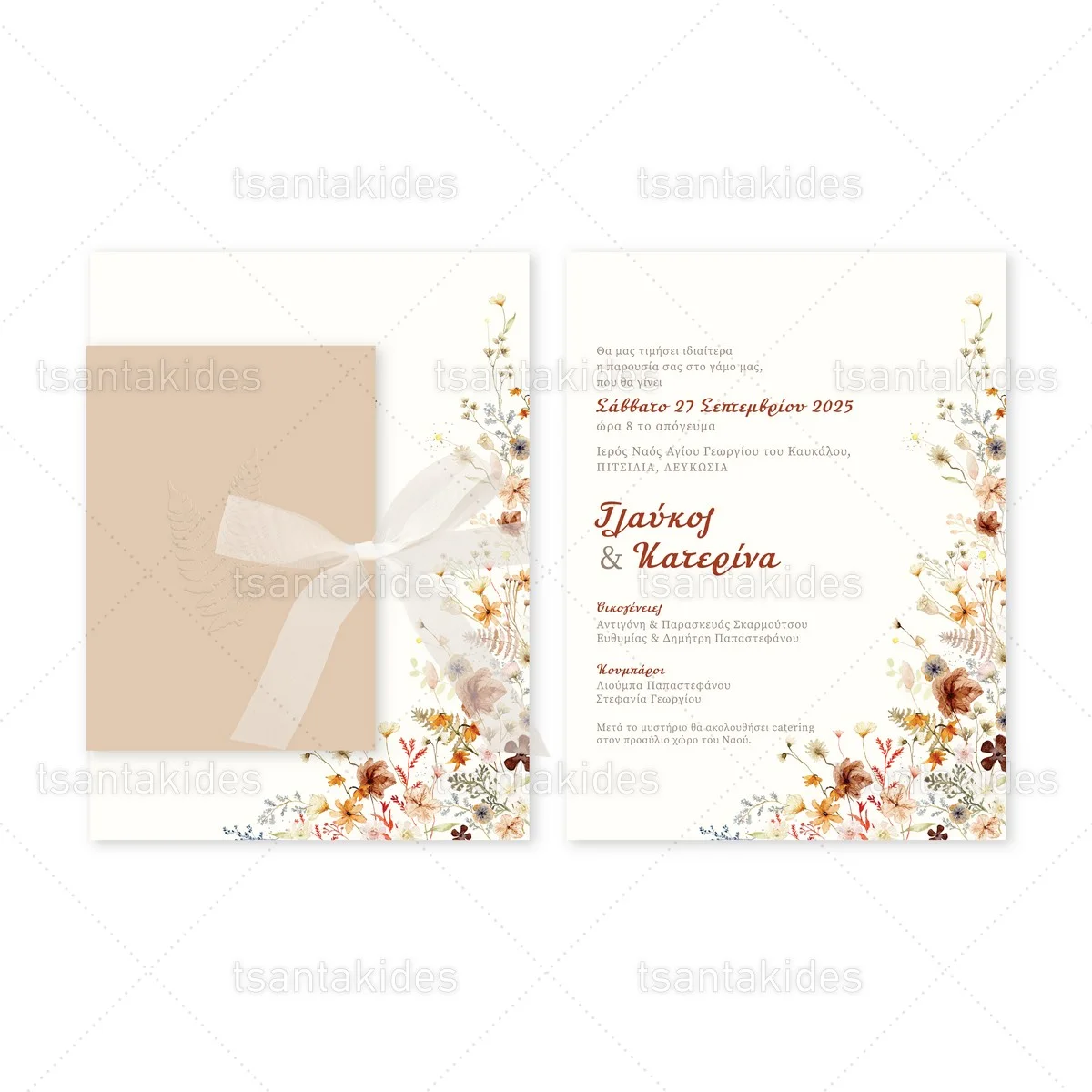 Προσκλητήριο γάμου εκτυπωμένο με θέμα Wildflowers Dried Meadow