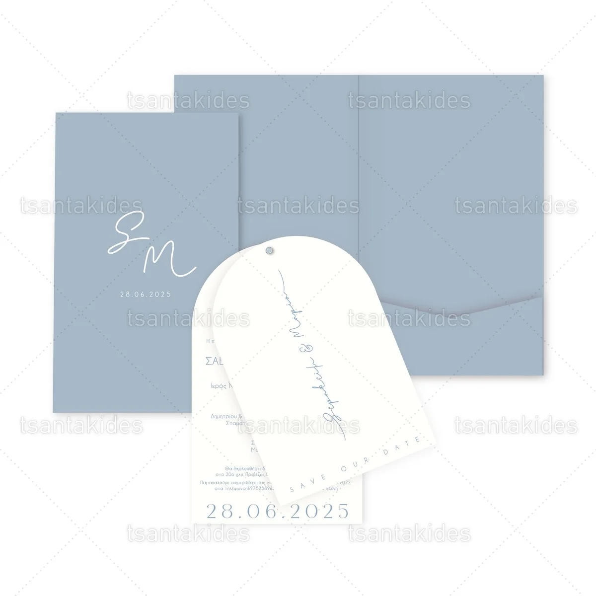 Προσκλητήριο γάμου εκτυπωμένο με θέμα Dusty Blue