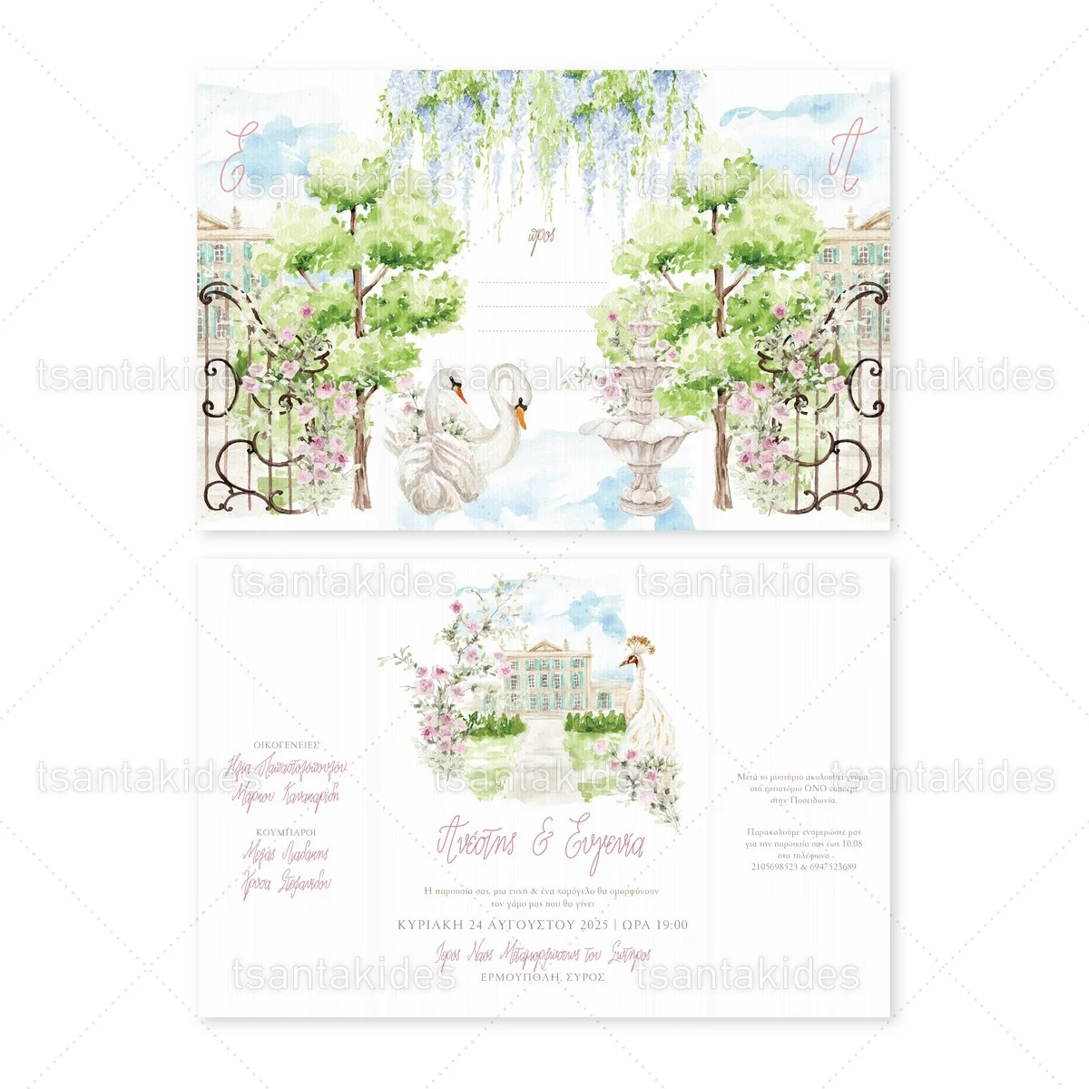 Προσκλητήριο γάμου εκτυπωμένο με θέμα Royal Garden