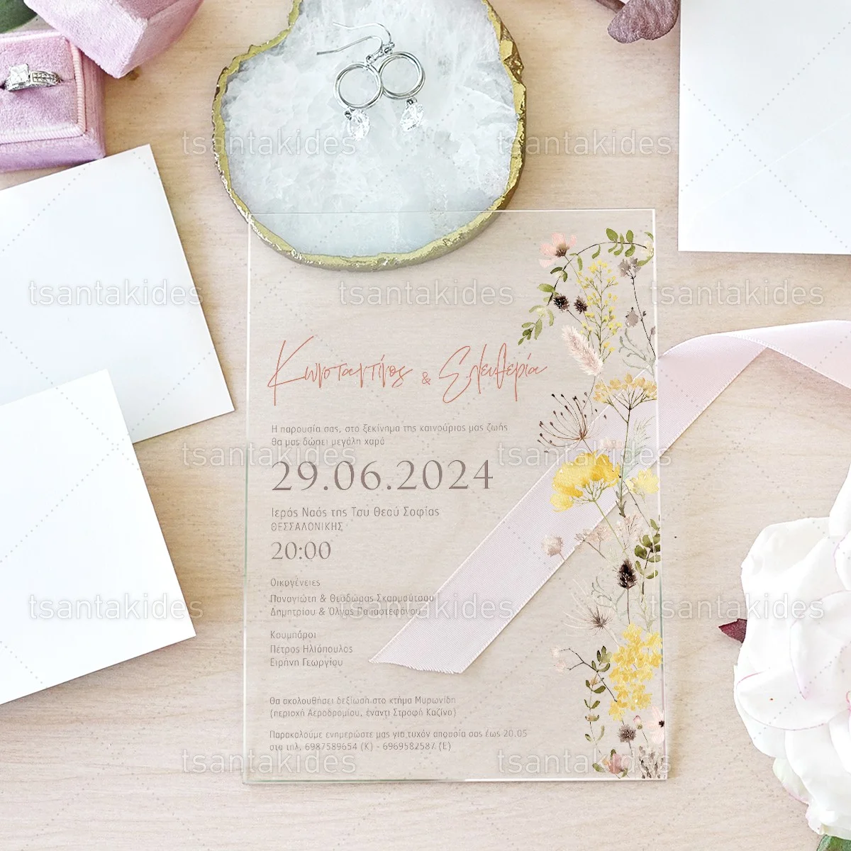 Προσκλητήριο γάμου εκτυπωμένο με θέμα Wildflowers