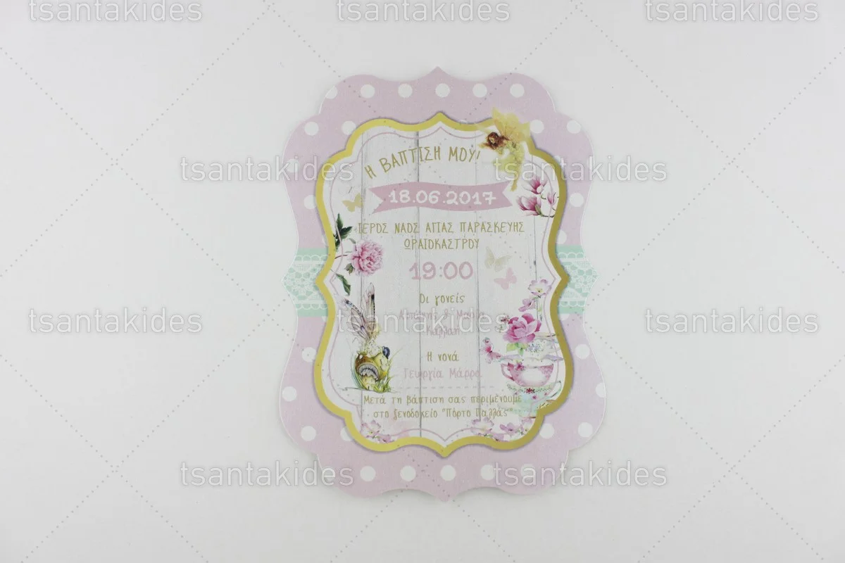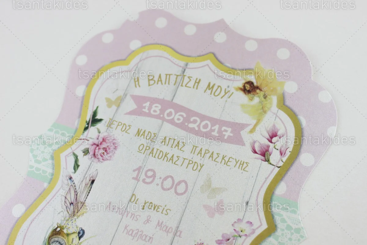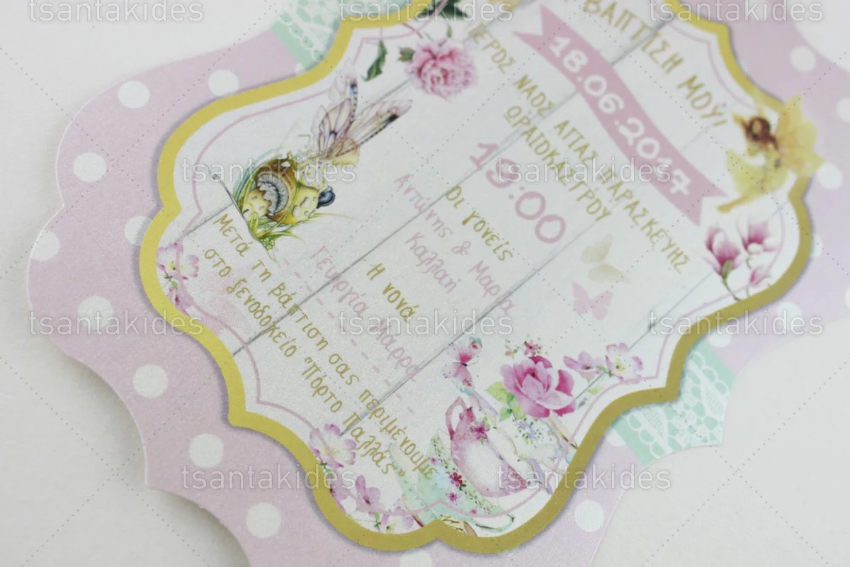 Προσκλητήριο βάπτισης για κορίτσι εκτυπωμένο με θέμα Fairies