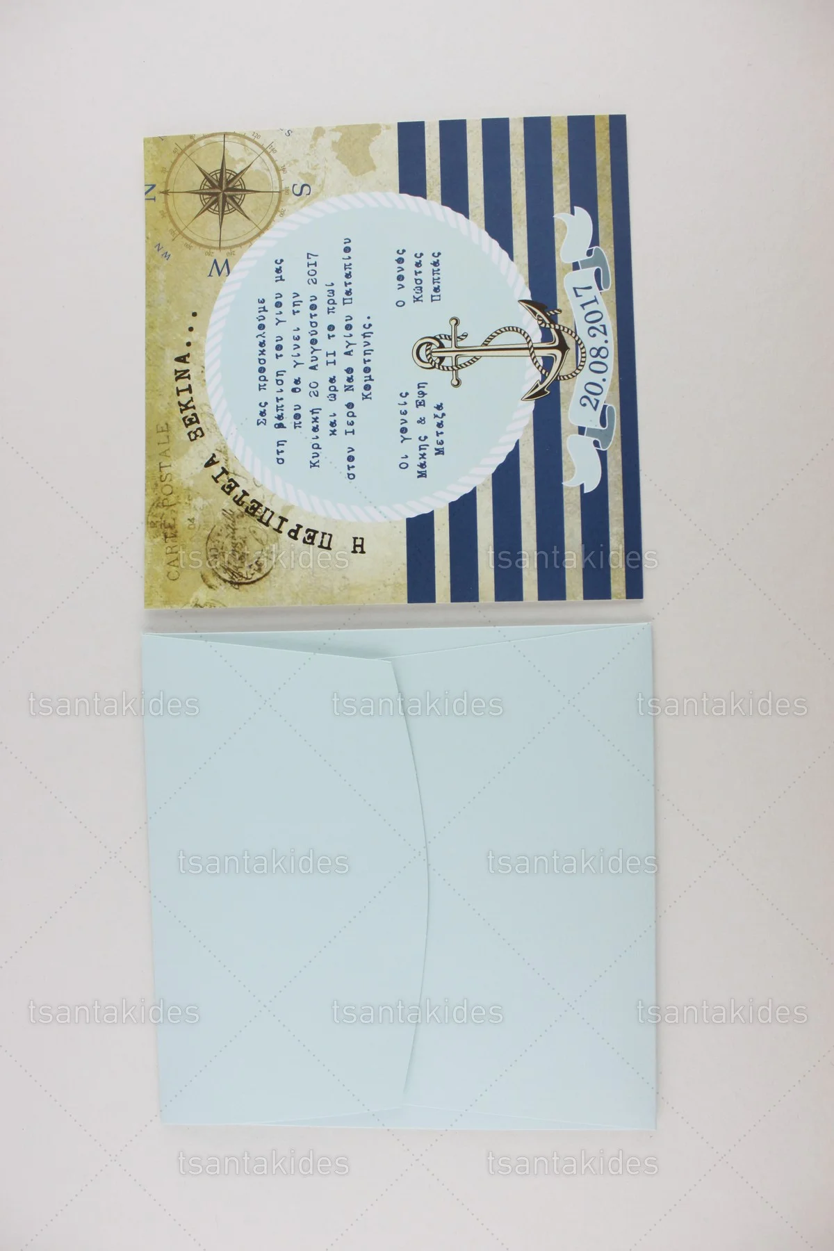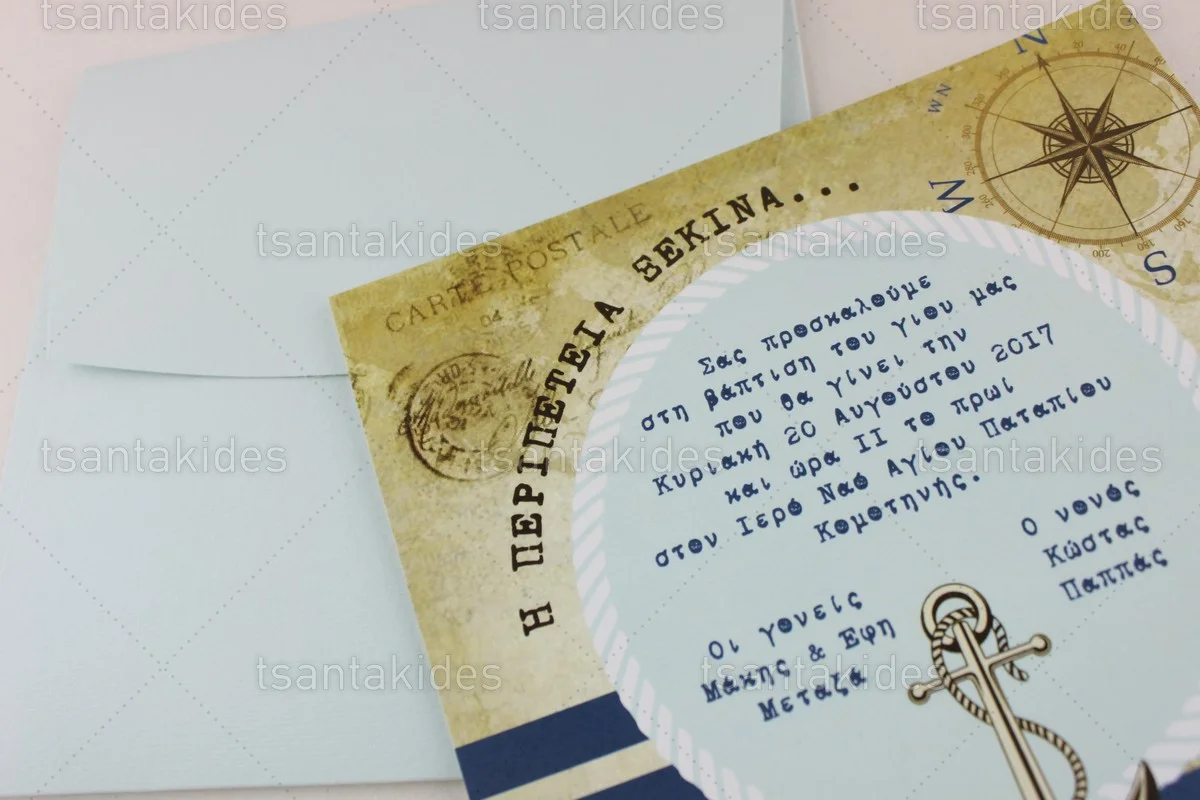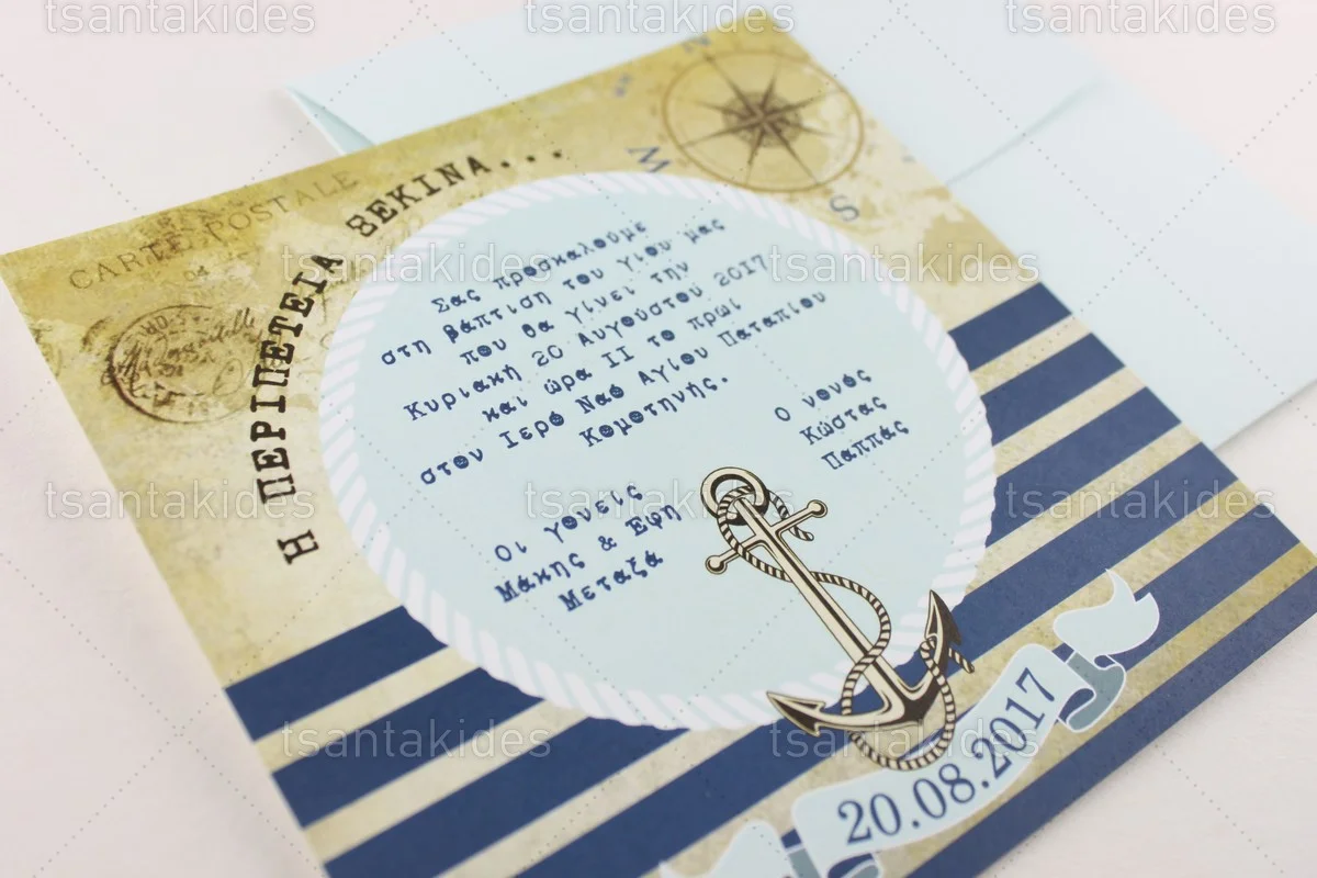 Προσκλητήριο βάπτισης για αγόρι εκτυπωμένο με θέμα Ναυτικός