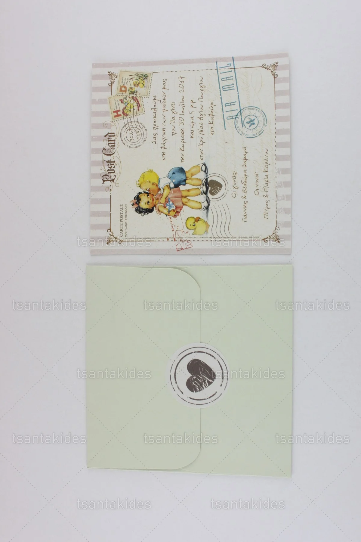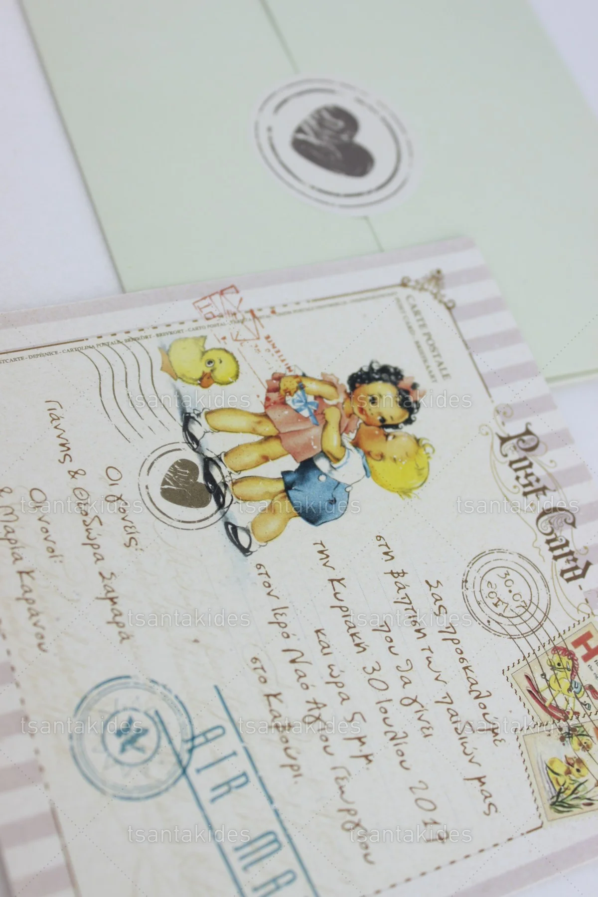 Προσκλητήριο βάπτισης για δίδυμα εκτυπωμένο με θέμα Twins