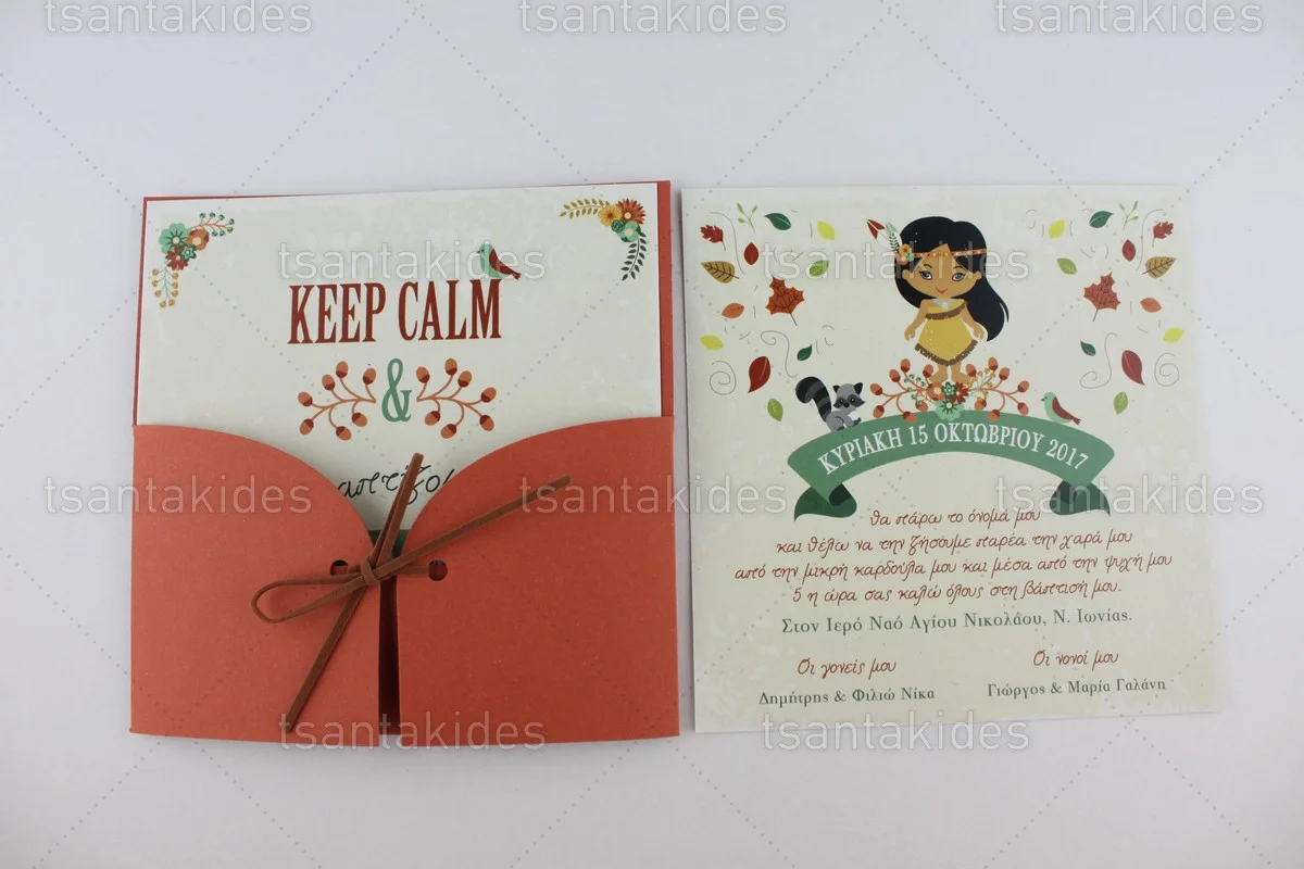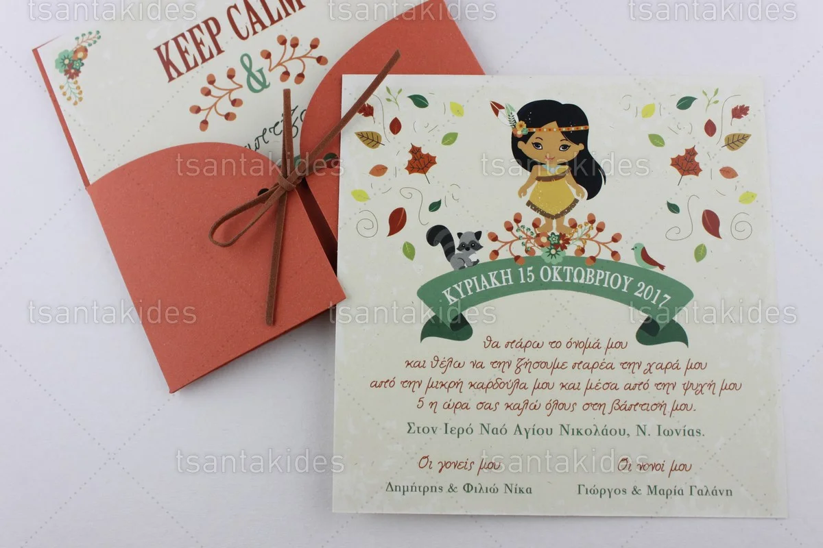 Προσκλητήριο βάπτισης για κορίτσι εκτυπωμένο με θέμα Indian Girl