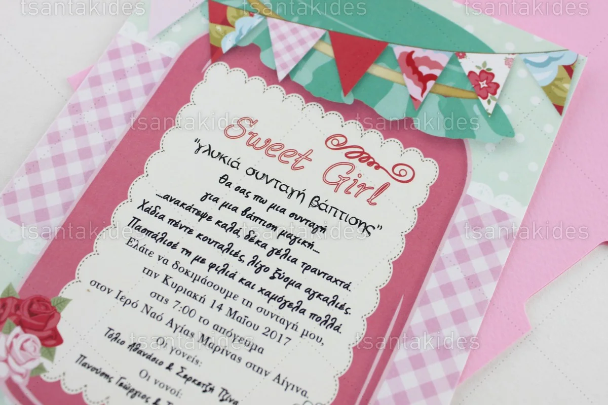 Προσκλητήριο βάπτισης για κορίτσι εκτυπωμένο με θέμα Sweet Girl