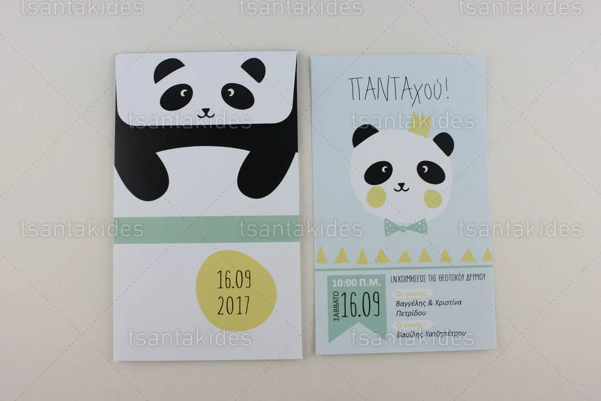 Προσκλητήριο βάπτισης για αγόρι εκτυπωμένο με θέμα Πάντα