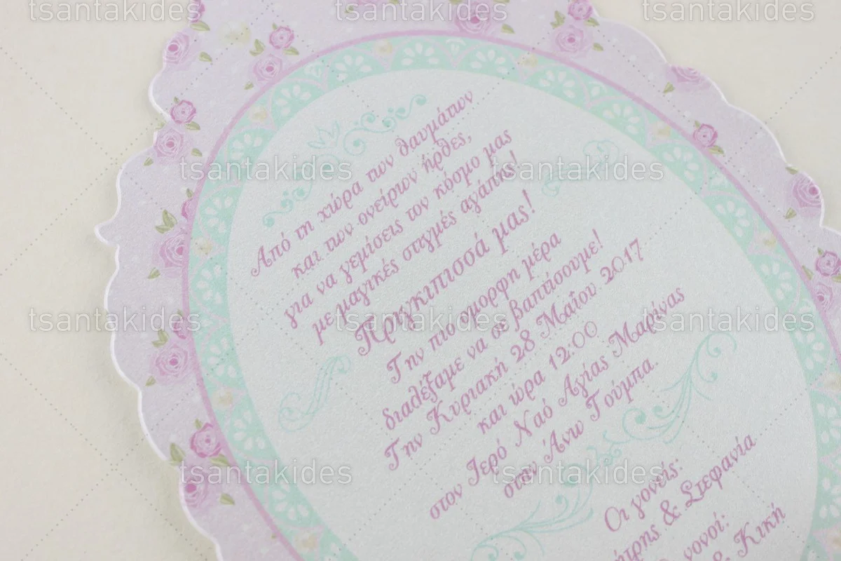 Προσκλητήριο βάπτισης για κορίτσι εκτυπωμένο με θέμα Floral