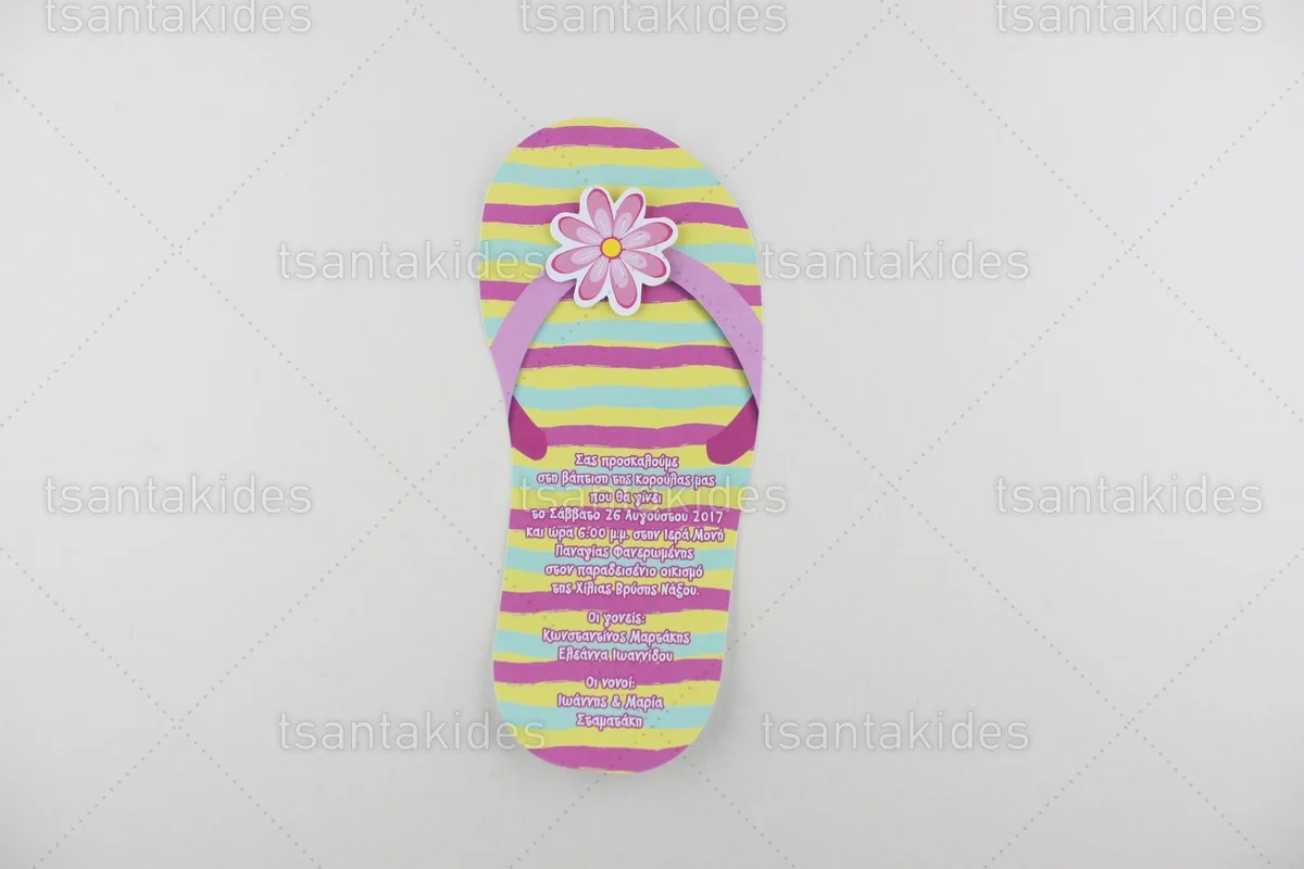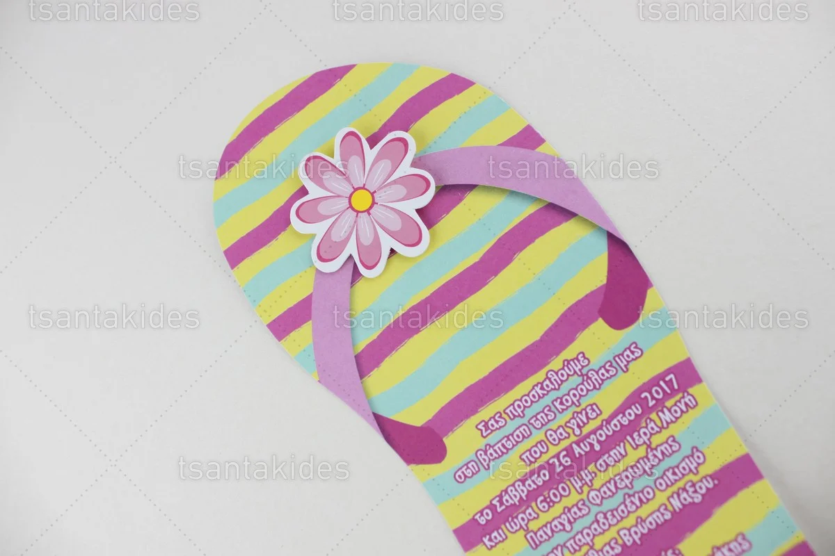 Προσκλητήριο βάπτισης για κορίτσι εκτυπωμένο με θέμα Summer