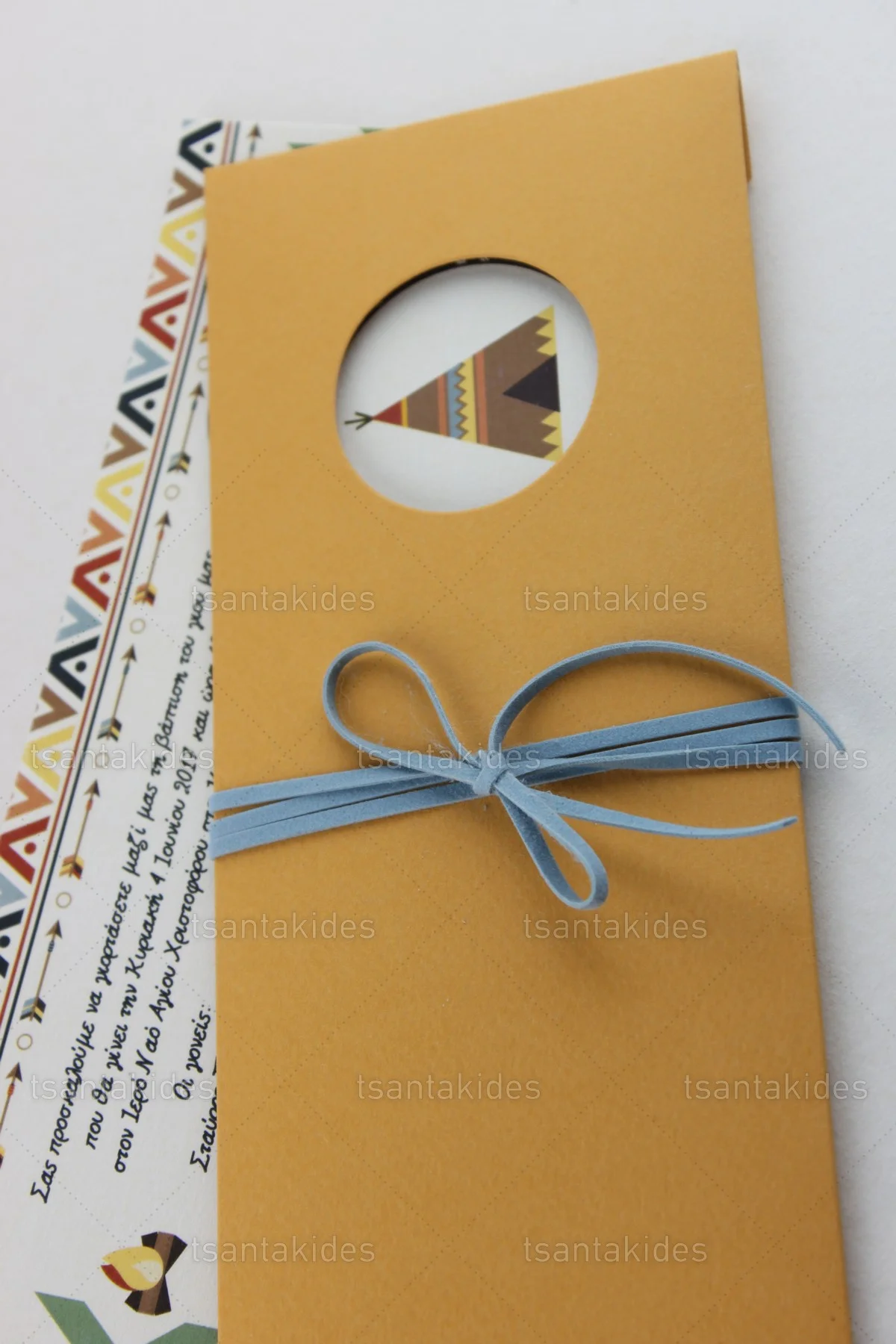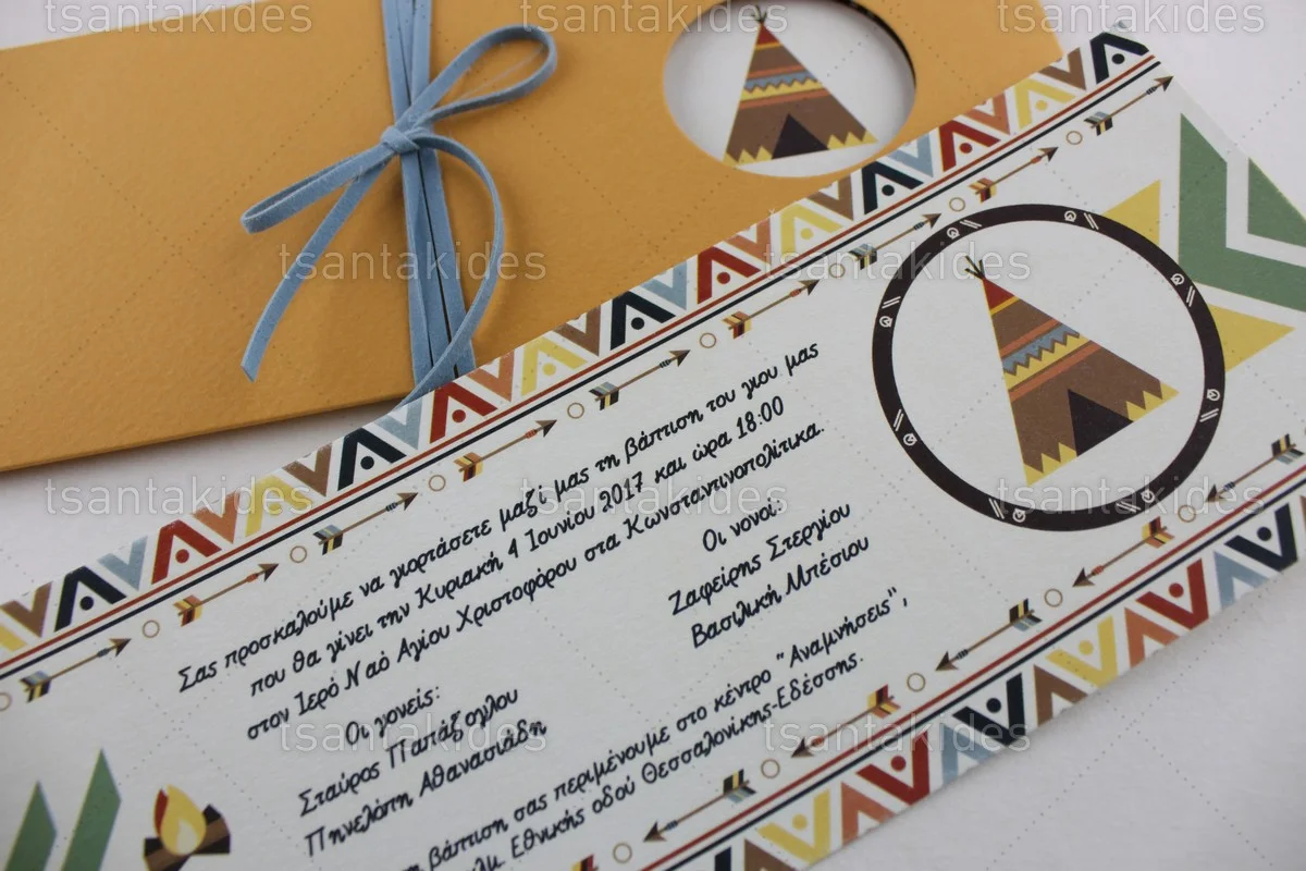 Προσκλητήριο βάπτισης για αγόρι εκτυπωμένο με θέμα Ινδιάνος