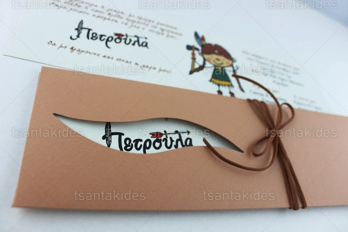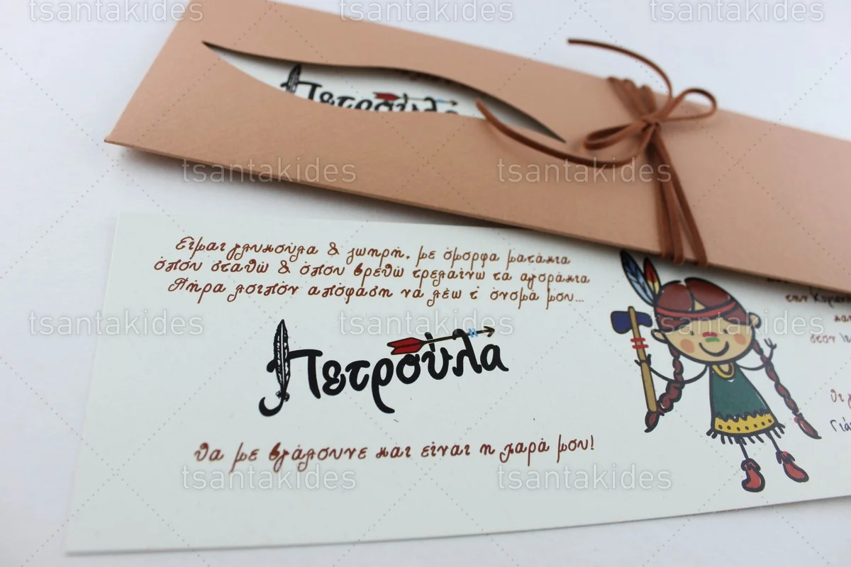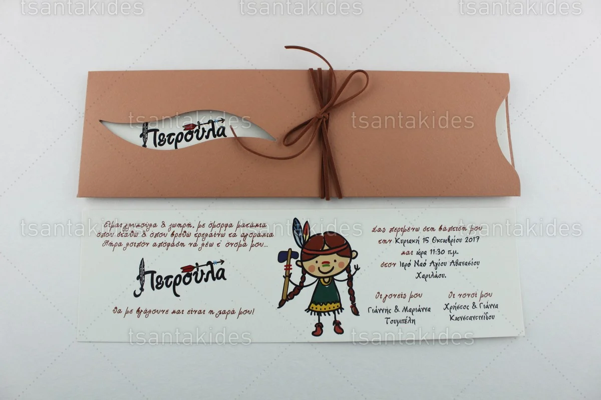 Προσκλητήριο βάπτισης για κορίτσι εκτυπωμένο με θέμα Ινδιάνος