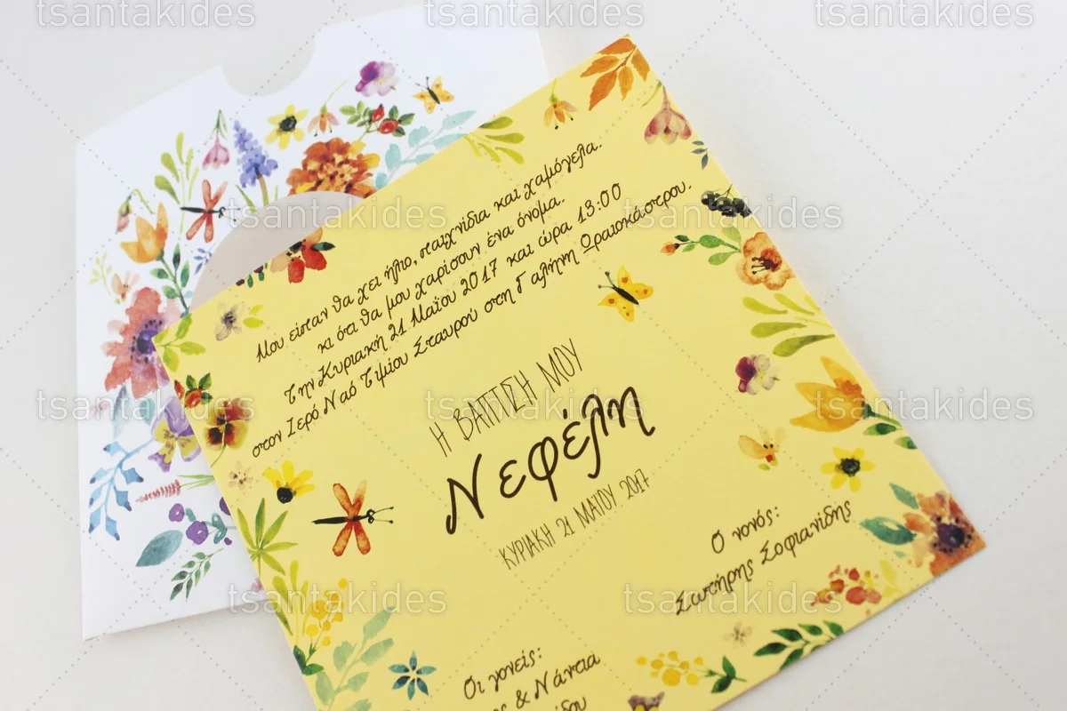 Προσκλητήριο βάπτισης για κορίτσι εκτυπωμένο με θέμα Floral