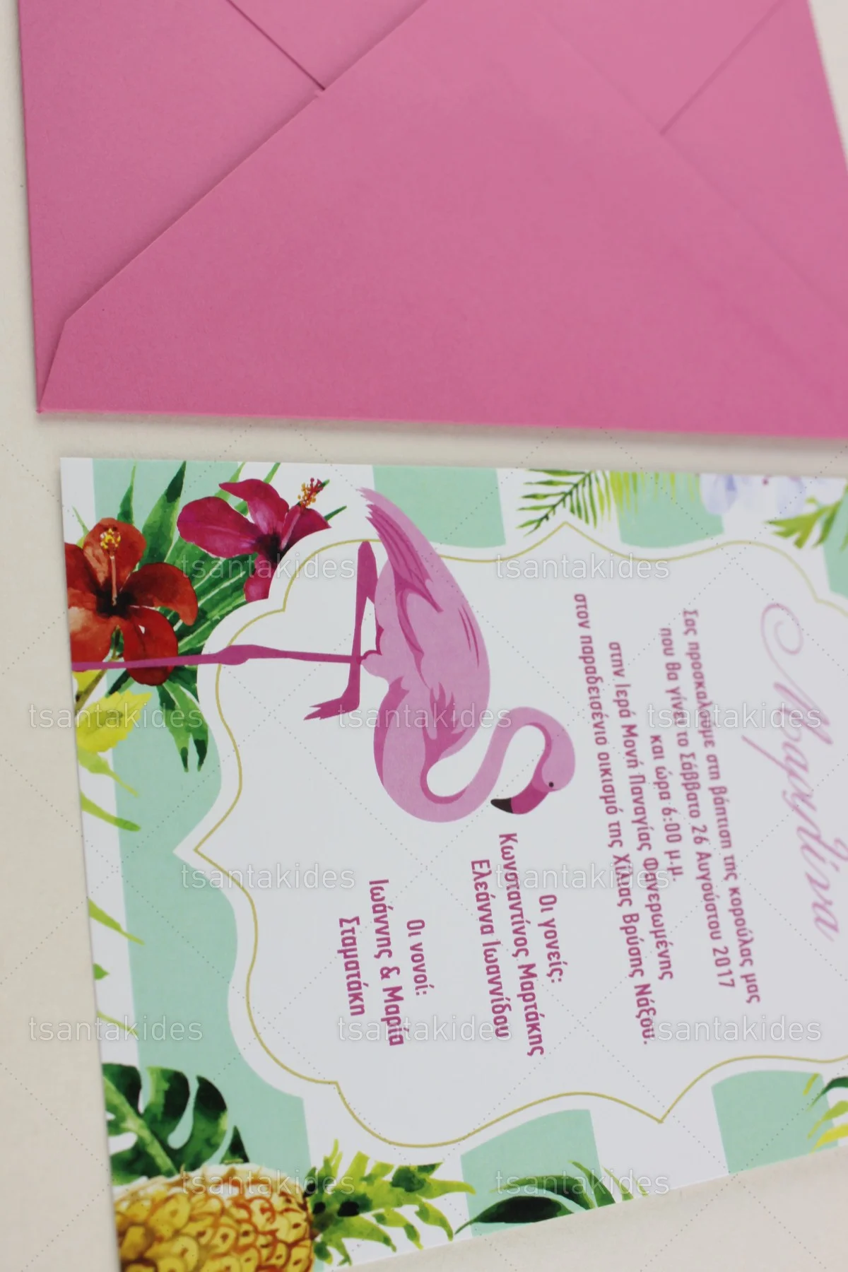 Προσκλητήριο βάπτισης για κορίτσι εκτυπωμένο με θέμα Floral