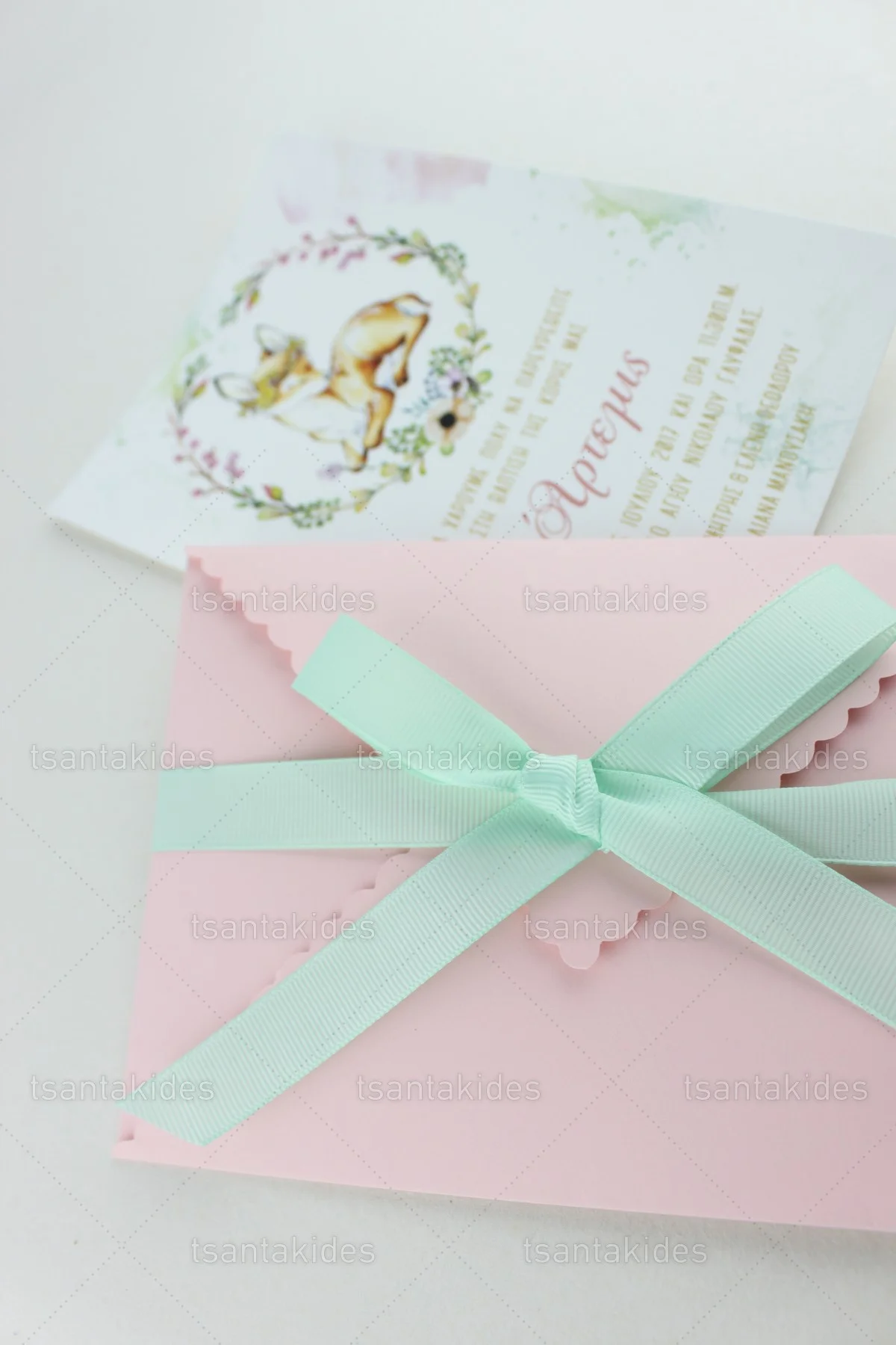 Προσκλητήριο βάπτισης για κορίτσι εκτυπωμένο με θέμα Ζώα του Δάσους