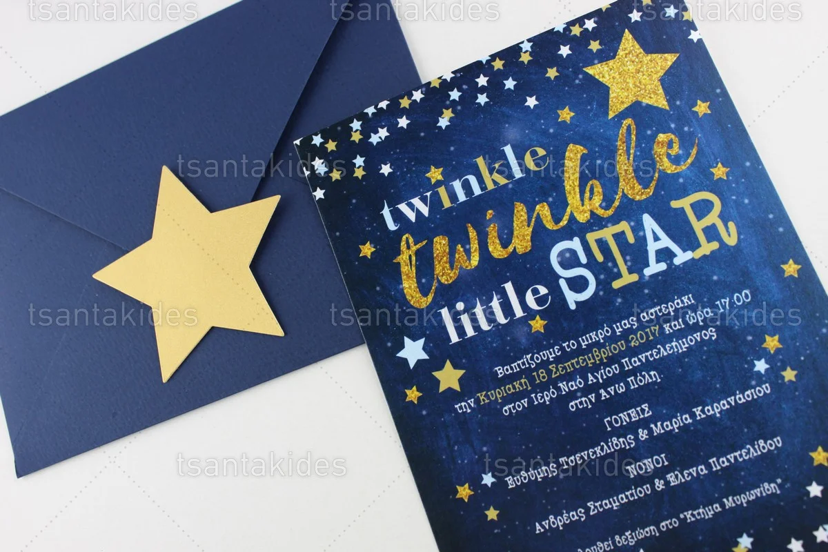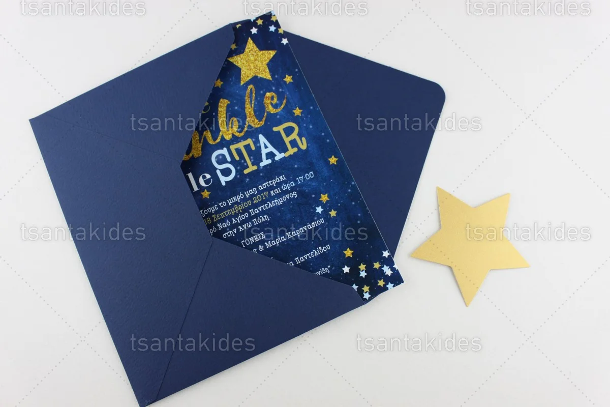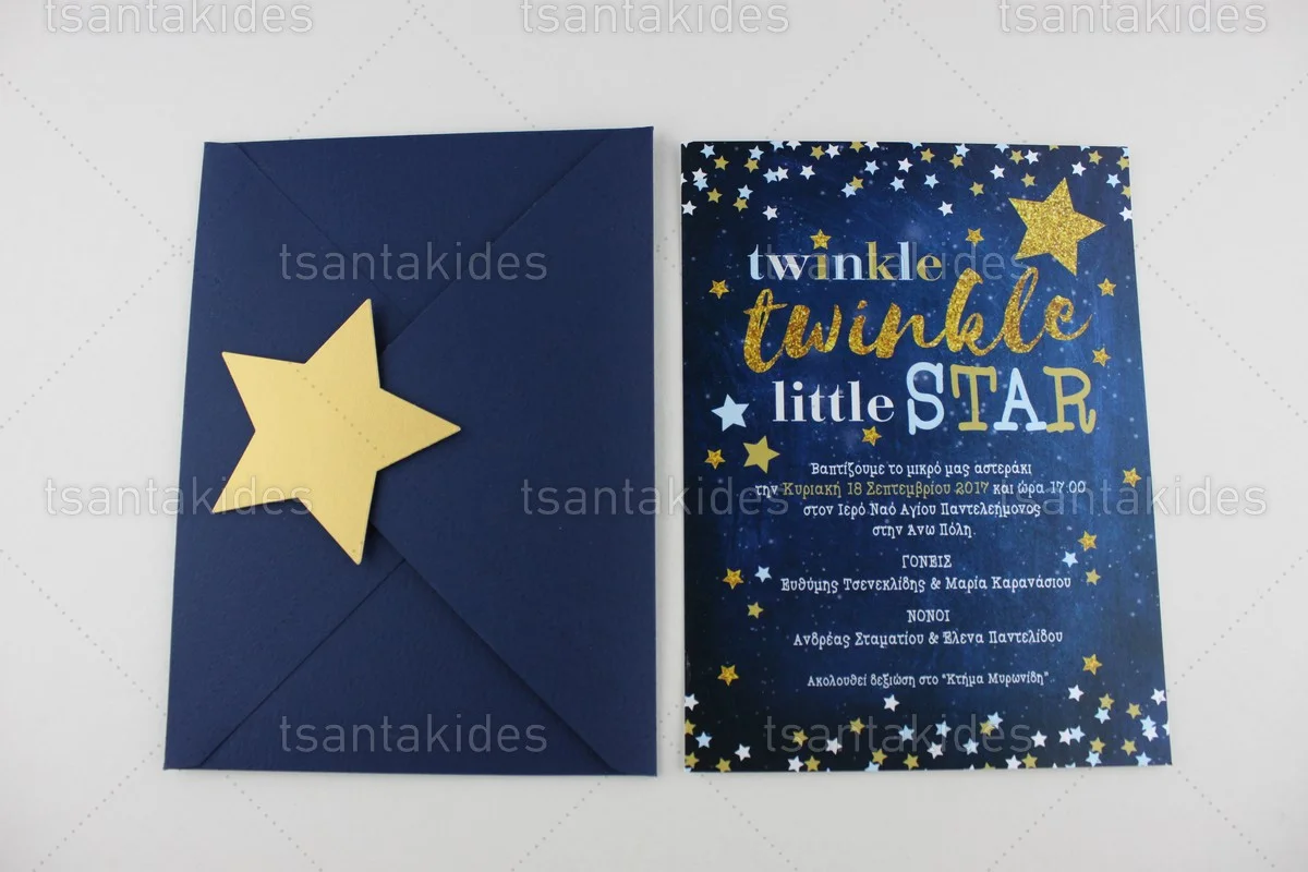 Προσκλητήριο βάπτισης για αγόρι εκτυπωμένο με θέμα Little Star