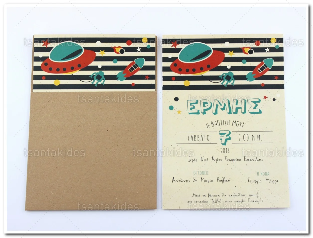 Προσκλητήριο βάπτισης για Αγόρι εκτυπωμένο με θέμα Διάστημα