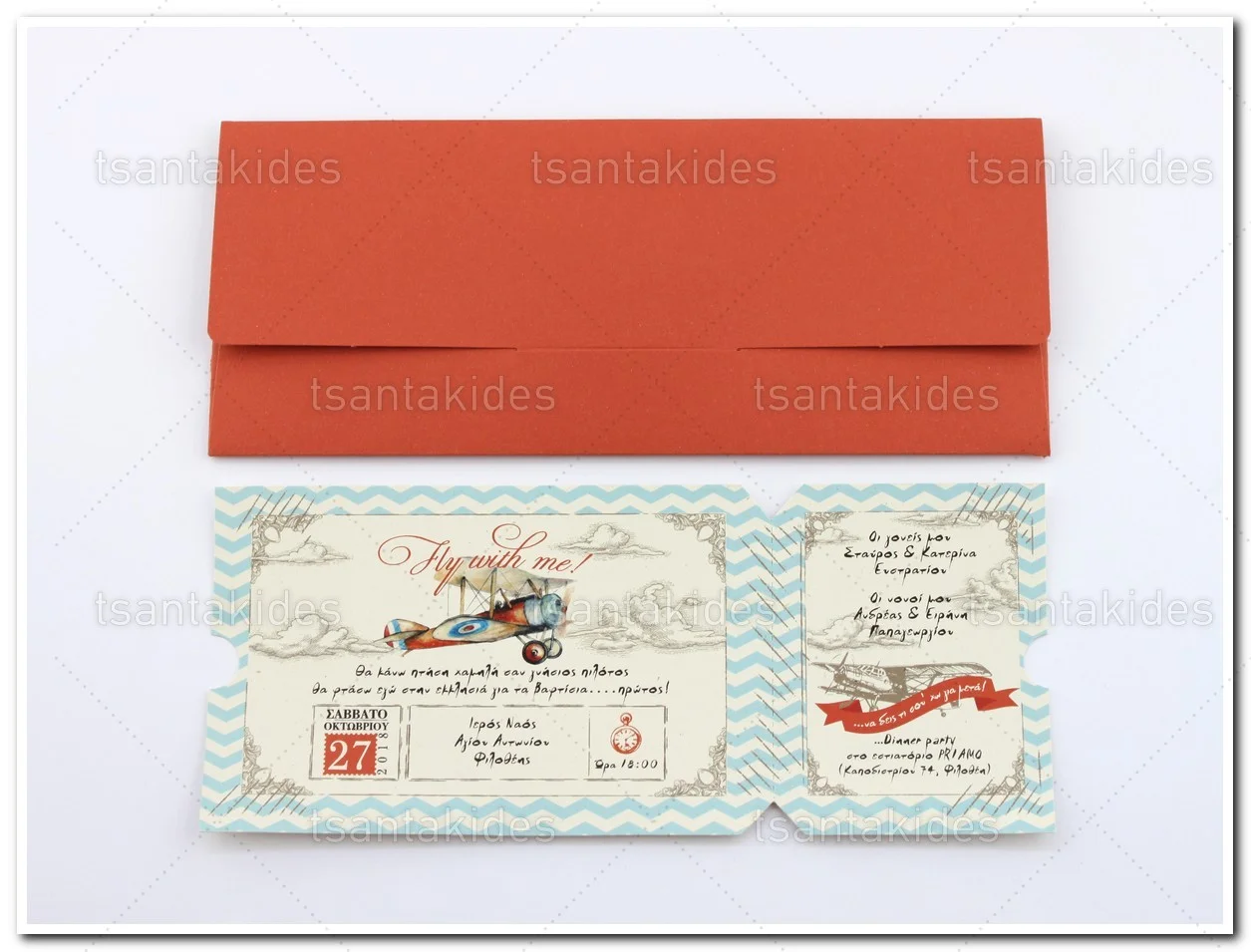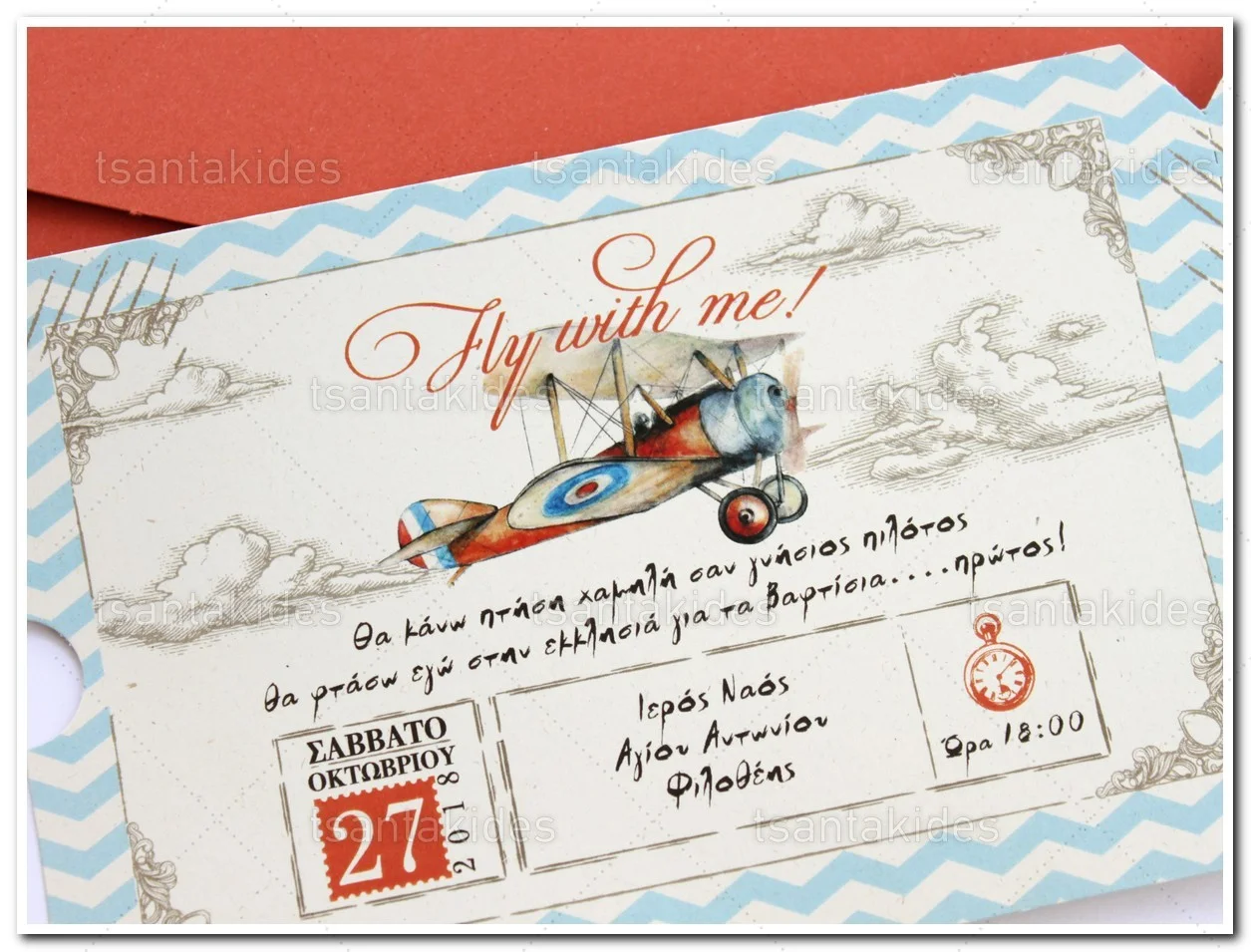 Προσκλητήριο βάπτισης για αγόρι εκτυπωμένο με θέμα Travel Boy