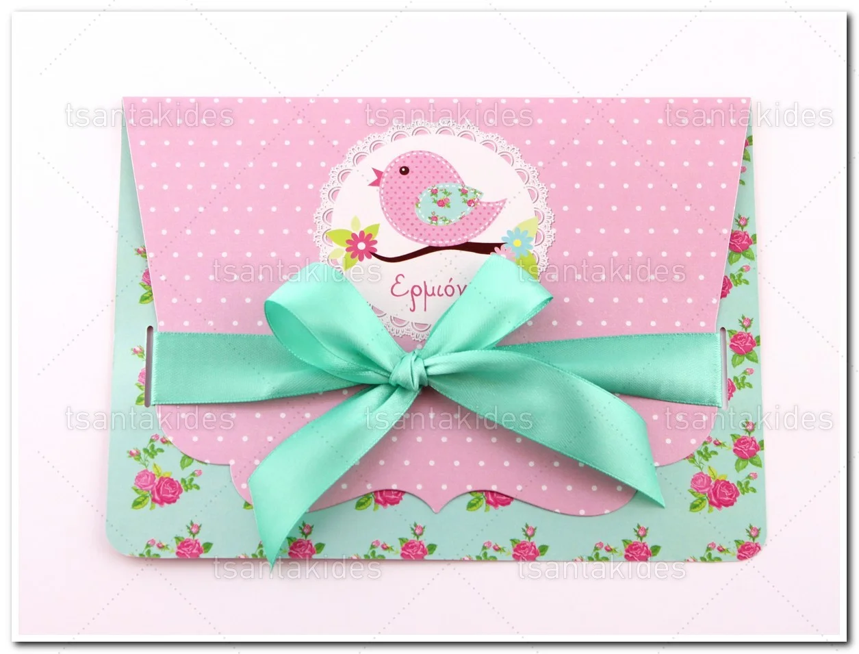 Προσκλητήριο βάπτισης για Κορίτσι εκτυπωμένο με θέμα Little Bird
