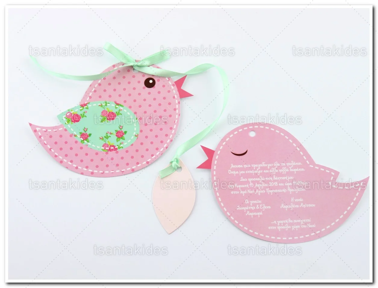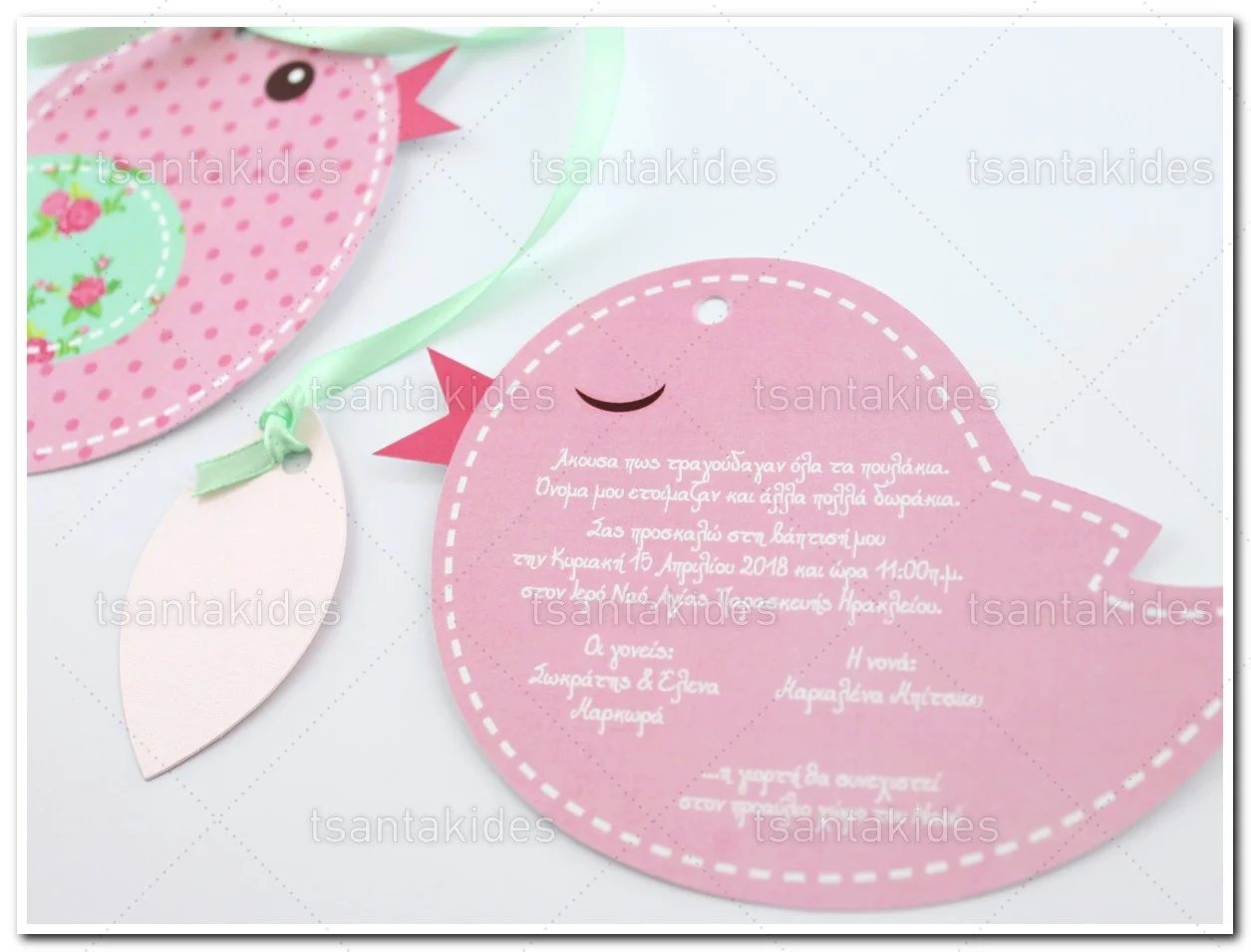 Προσκλητήριο βάπτισης για κορίτσι εκτυπωμένο με θέμα Birdy