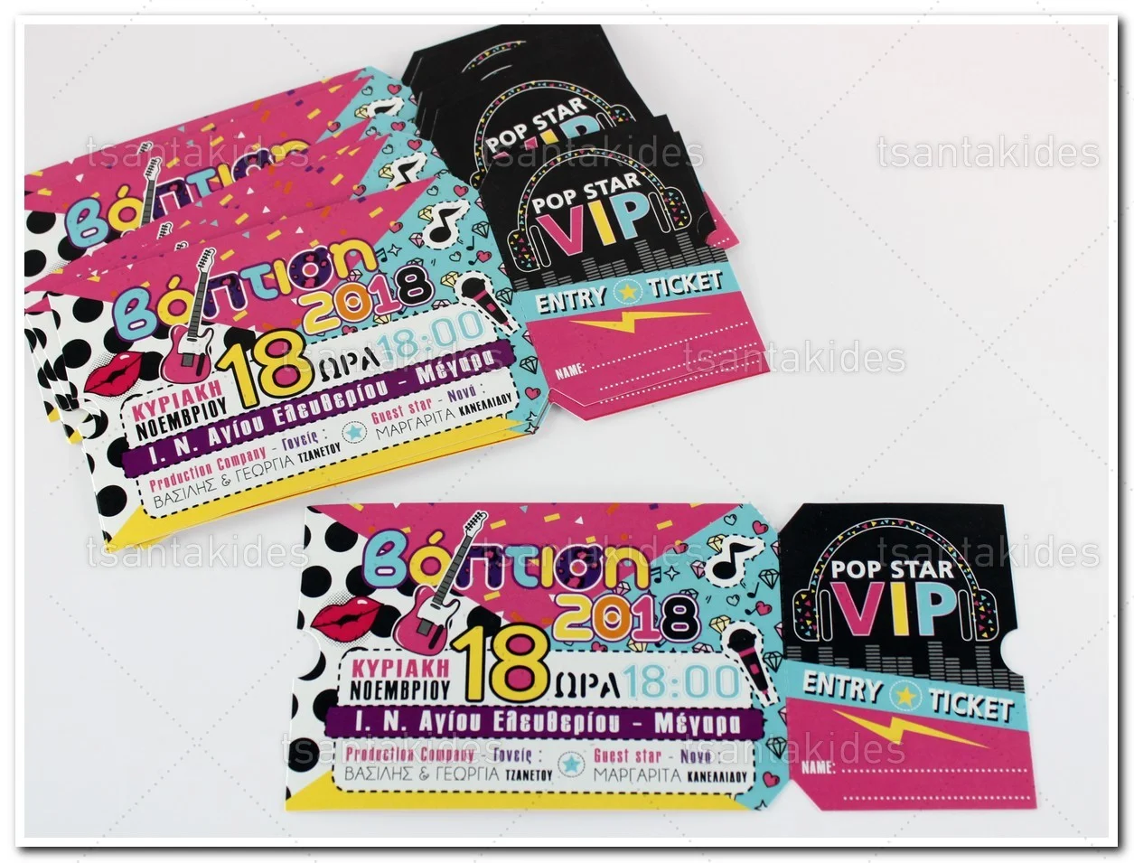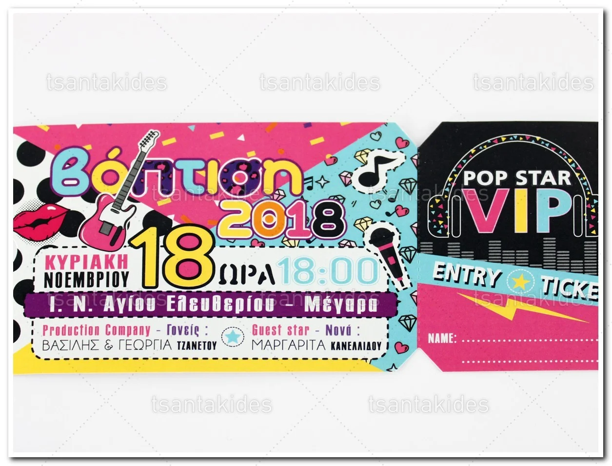 Προσκλητήριο βάπτισης για αγόρι εκτυπωμένο με θέμα Pop Star