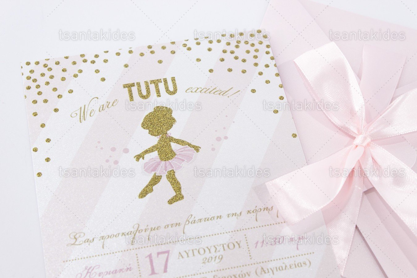 Προσκλητήριο βάπτισης για Κορίτσι εκτυπωμένο με θέμα Μπαλαρίνα
