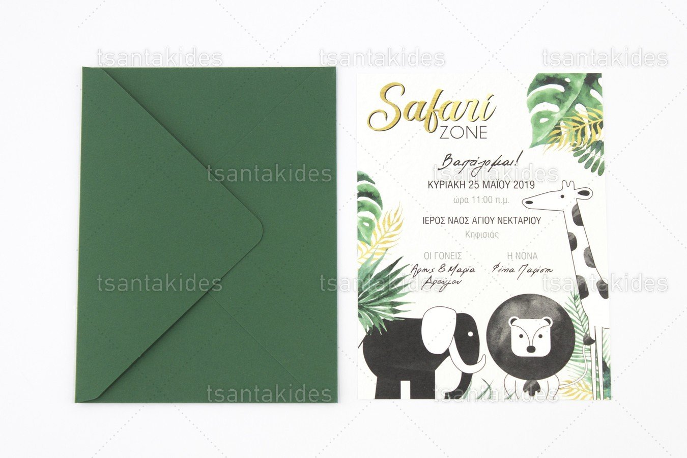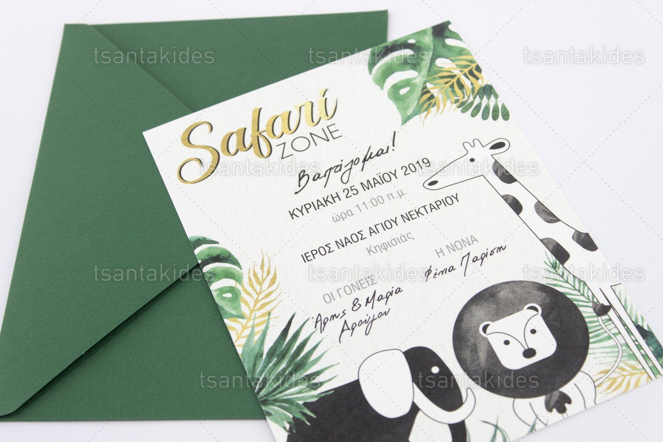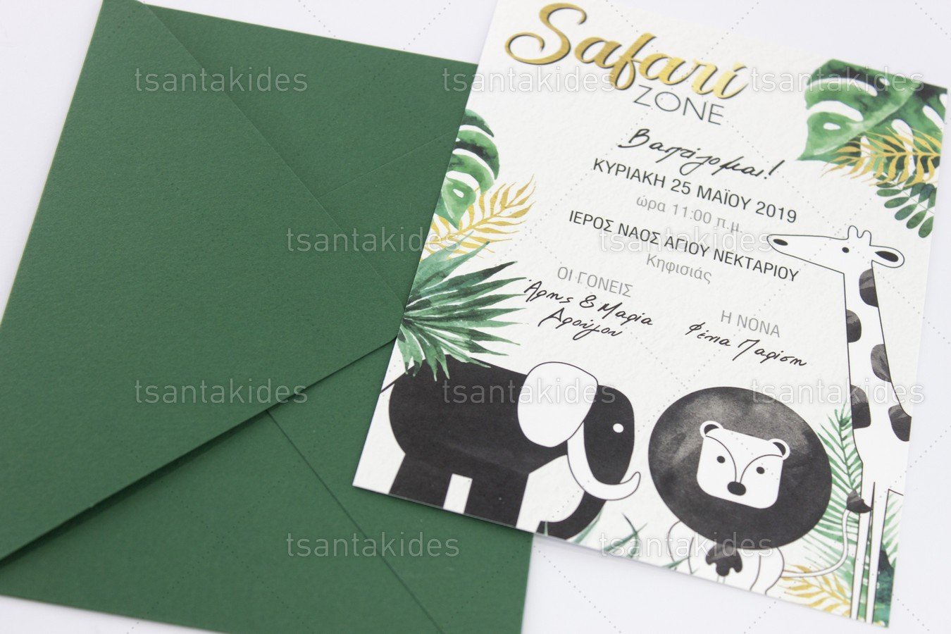 Προσκλητήριο βάπτισης για Αγόρι εκτυπωμένο με θέμα Ζώα της Ζούγκλας