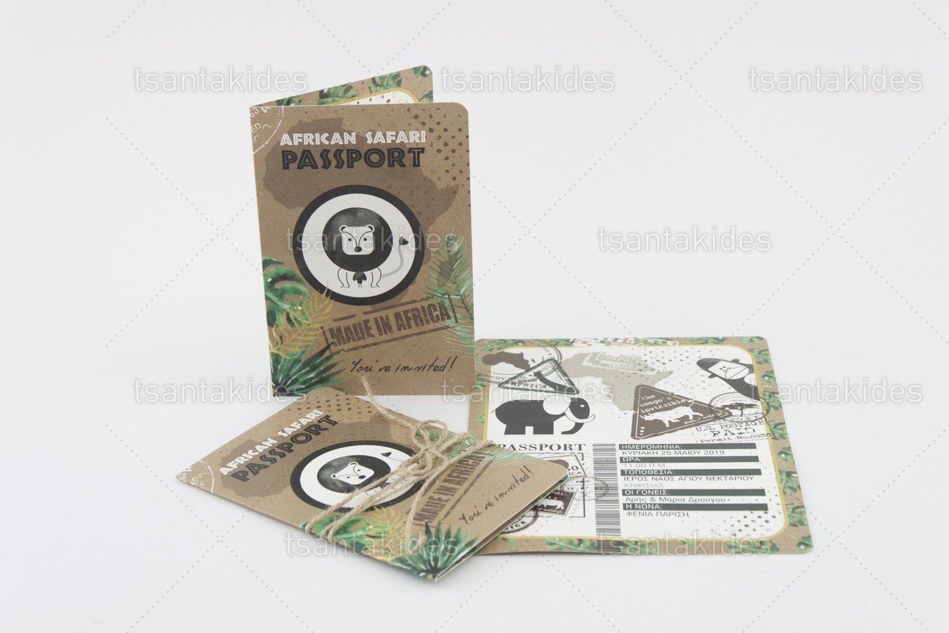 Προσκλητήριο βάπτισης για Αγόρι εκτυπωμένο με θέμα African Safari