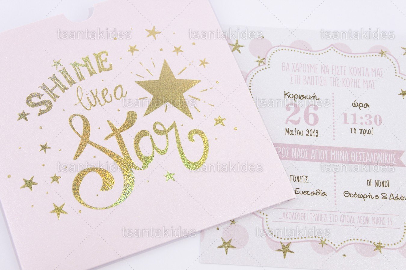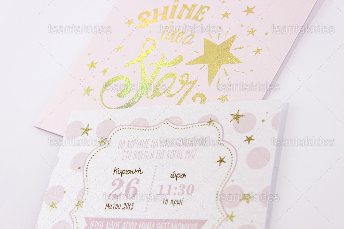 Προσκλητήριο βάπτισης για κορίτσι εκτυπωμένο με θέμα Little Stars