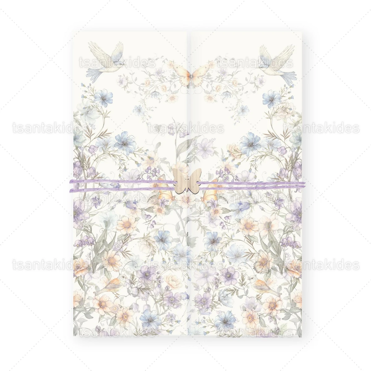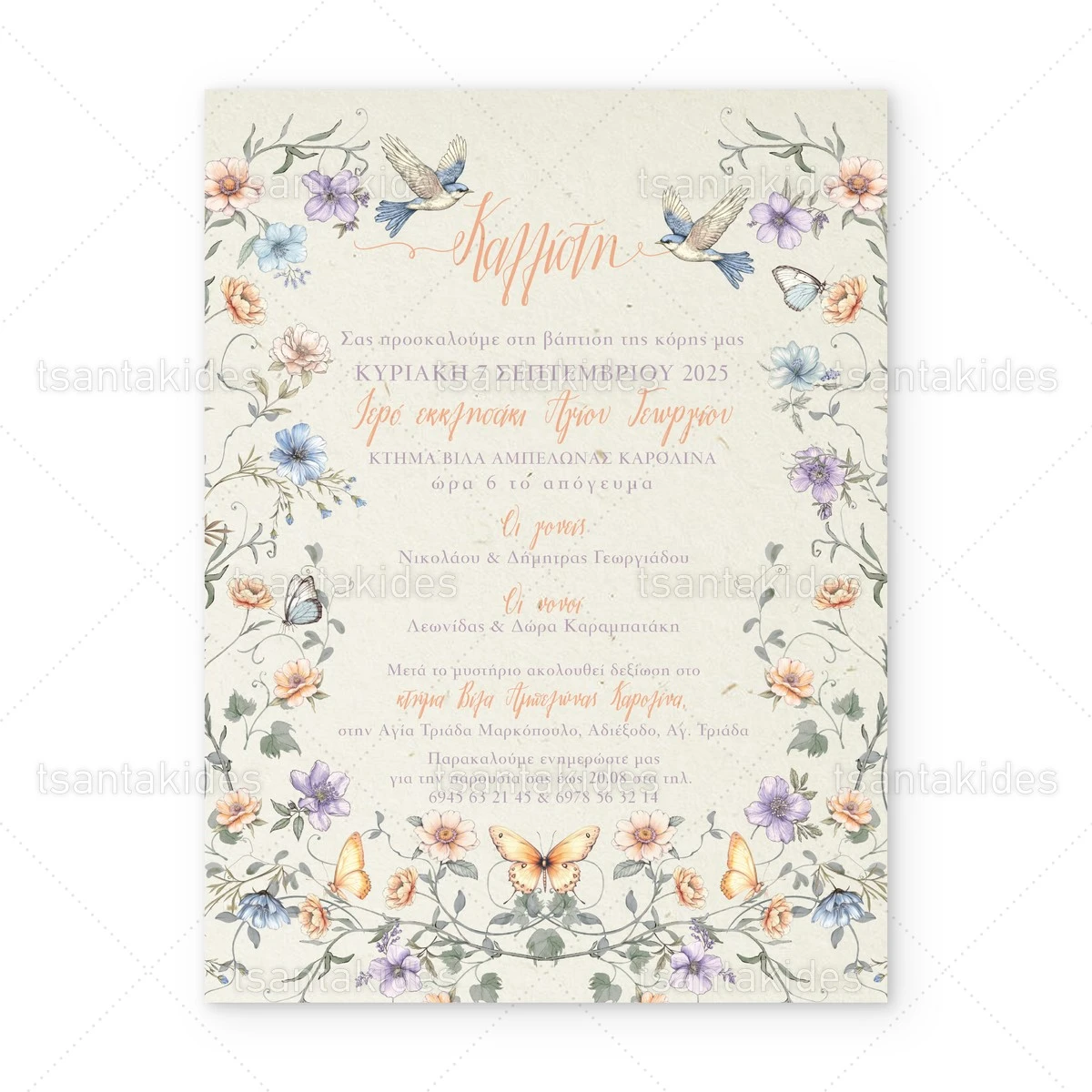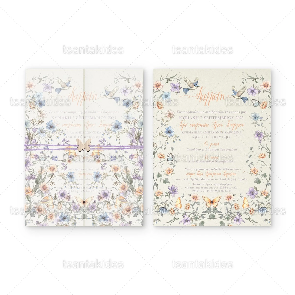 Προσκλητήριο βάπτισης για κορίτσι εκτυπωμένο με θέμα Valley Dreams