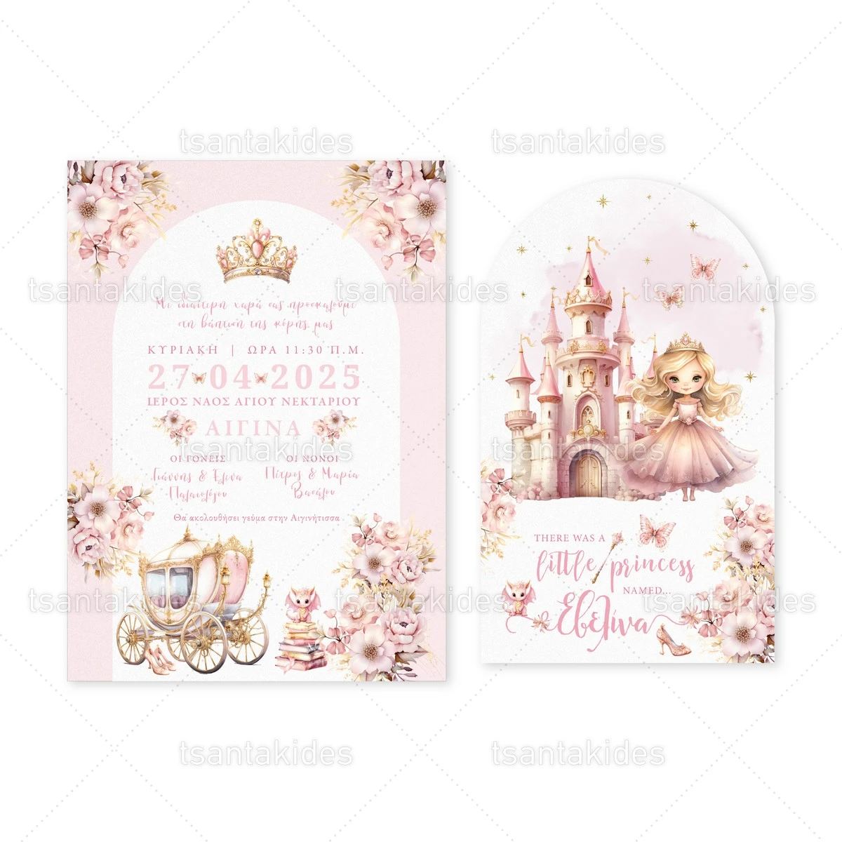 Προσκλητήριο βάπτισης για κορίτσι εκτυπωμένο με θέμα Princess
