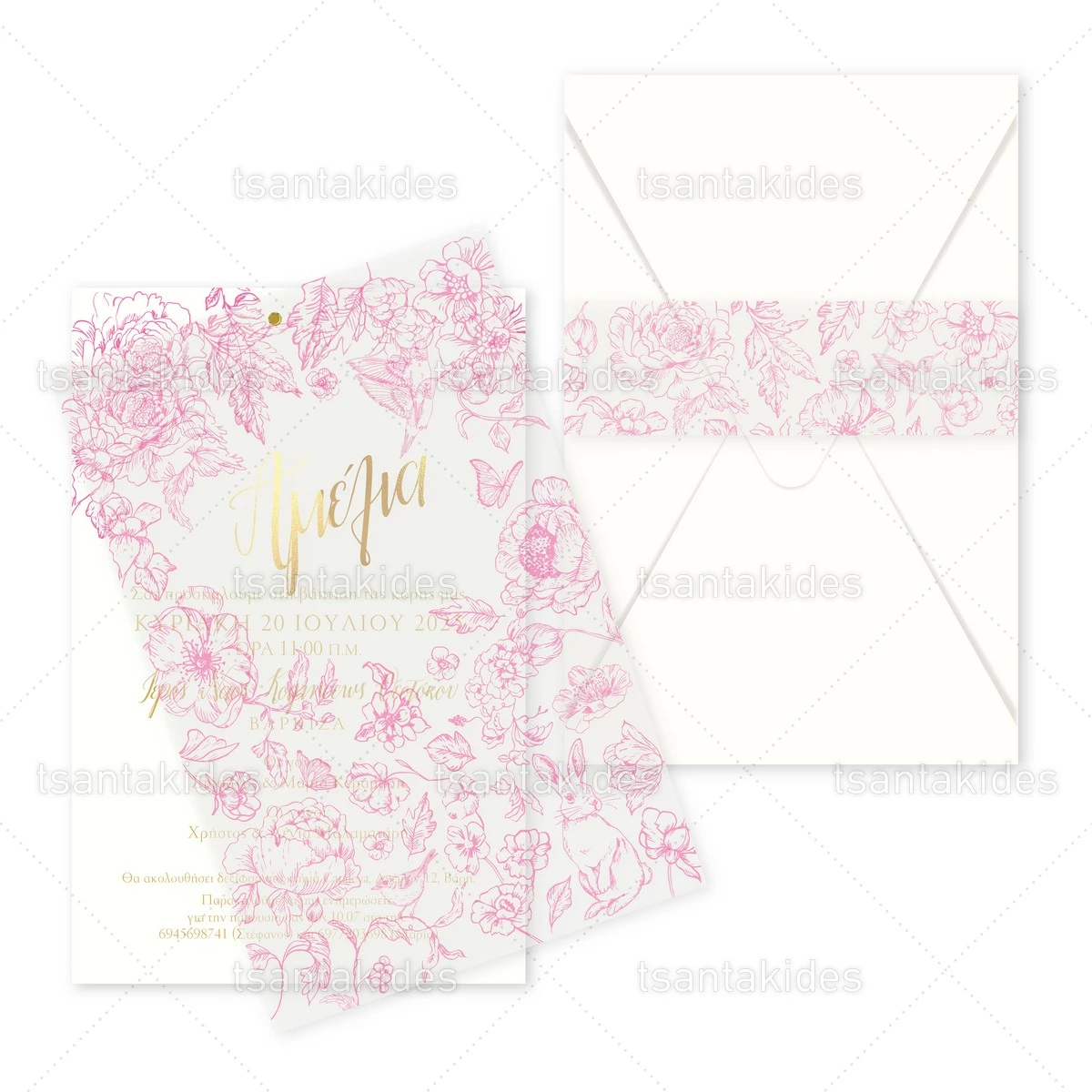 Προσκλητήριο βάπτισης για κορίτσι εκτυπωμένο με θέμα Fuchsia Royal Ornamental