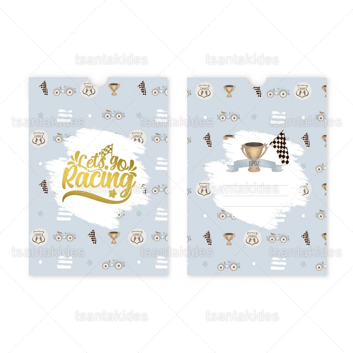 Προσκλητήριο βάπτισης για Αγόρι εκτυπωμένο με θέμα Blue Racing Cars