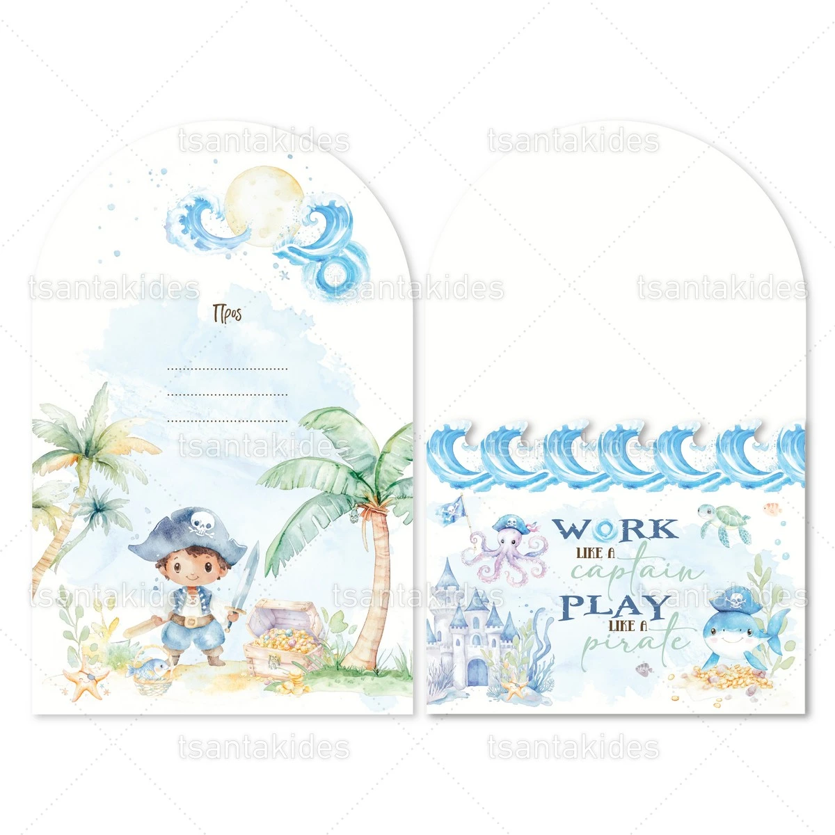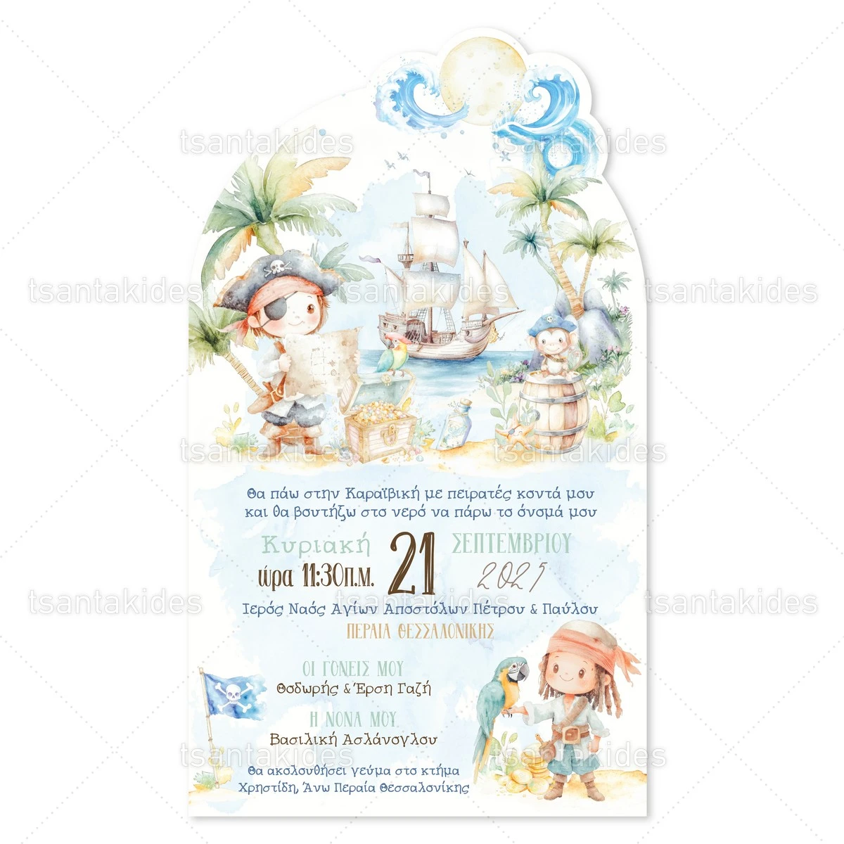Προσκλητήριο βάπτισης για αγόρι εκτυπωμένο με θέμα Pirates Adventure