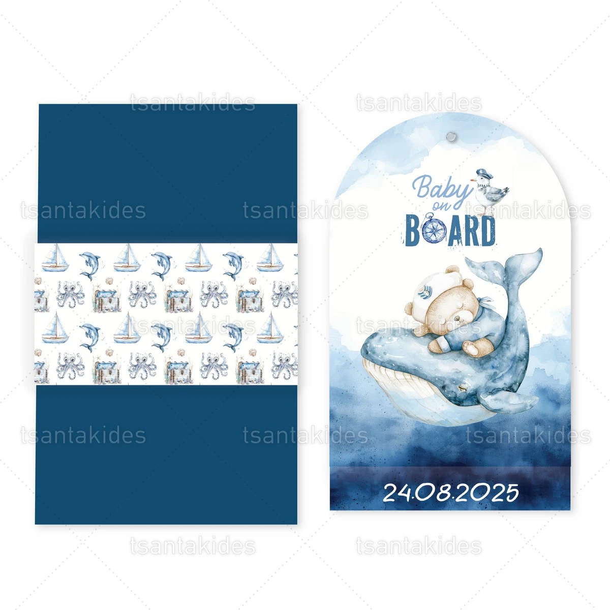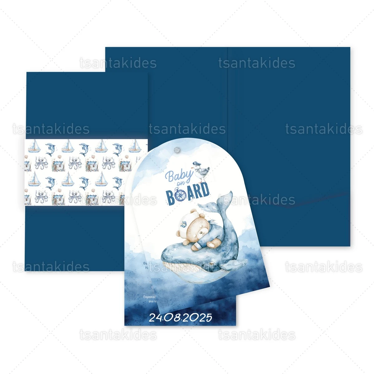 Προσκλητήριο βάπτισης για αγόρι εκτυπωμένο με θέμα Sailor Bear