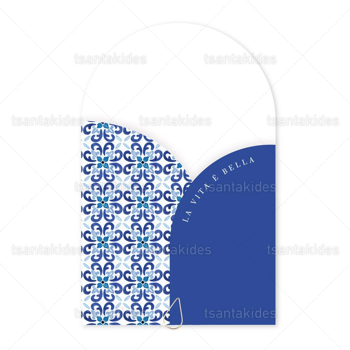 Προσκλητήριο βάπτισης για αγόρι εκτυπωμένο με θέμα Majolica Tile & Oranges