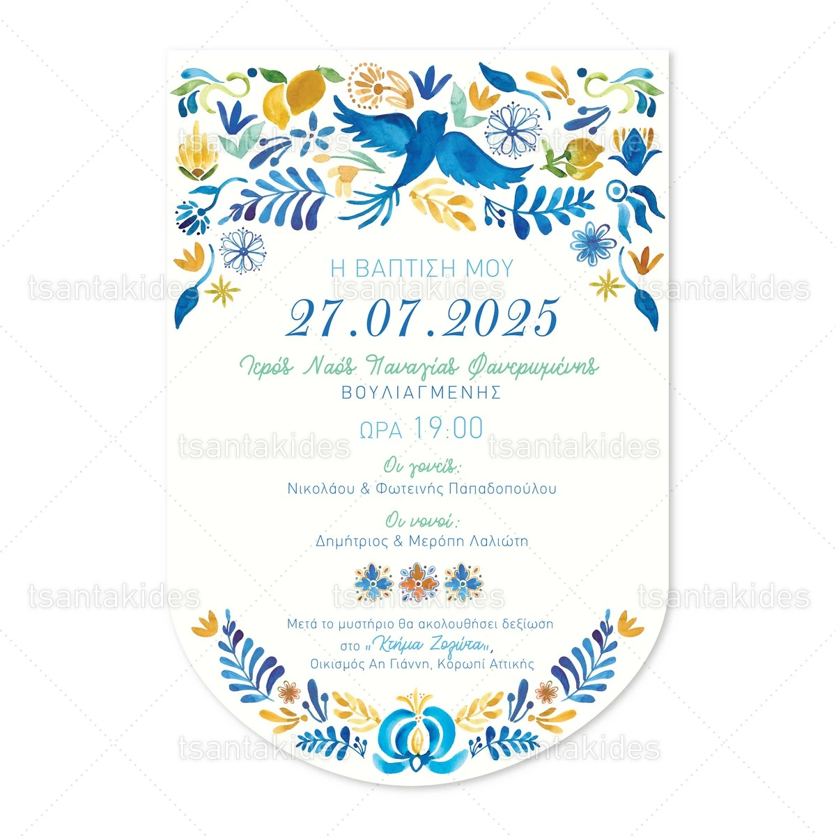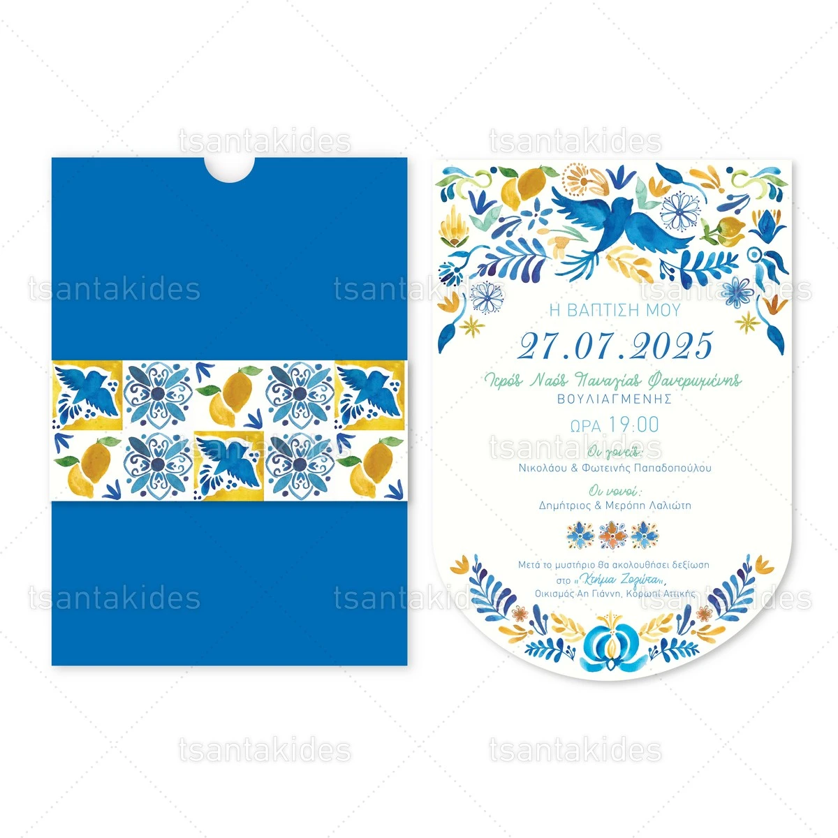 Προσκλητήριο βάπτισης για αγόρι εκτυπωμένο με θέμα Italian Style