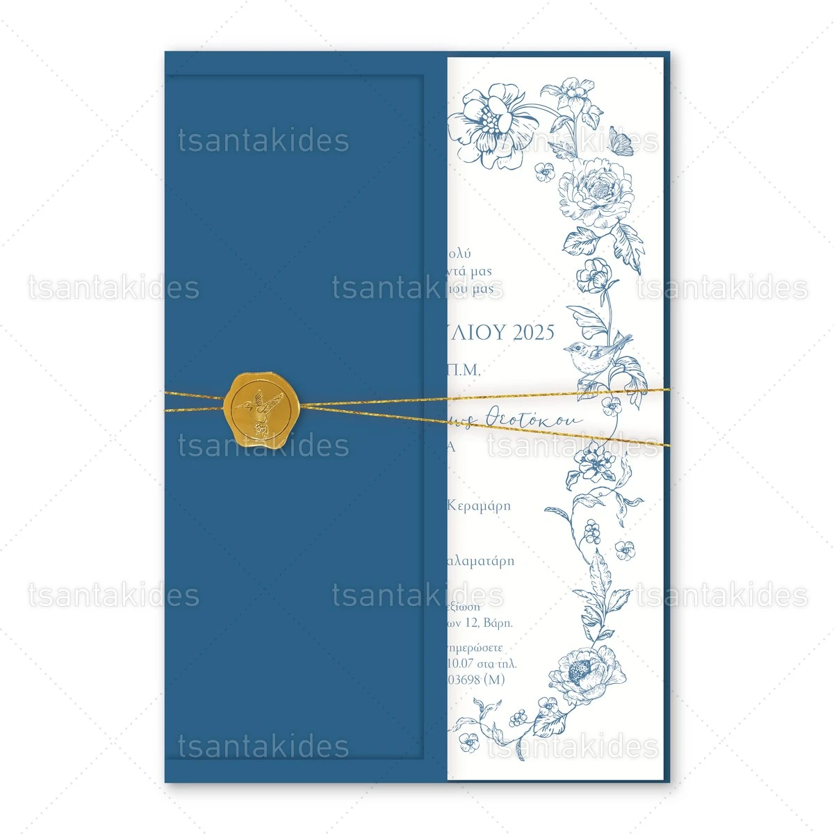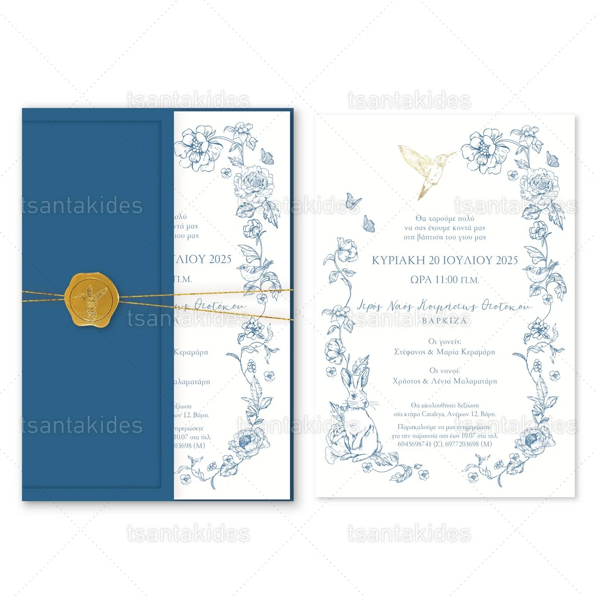 Προσκλητήριο βάπτισης για αγόρι εκτυπωμένο με θέμα Blue Royal Ornamental