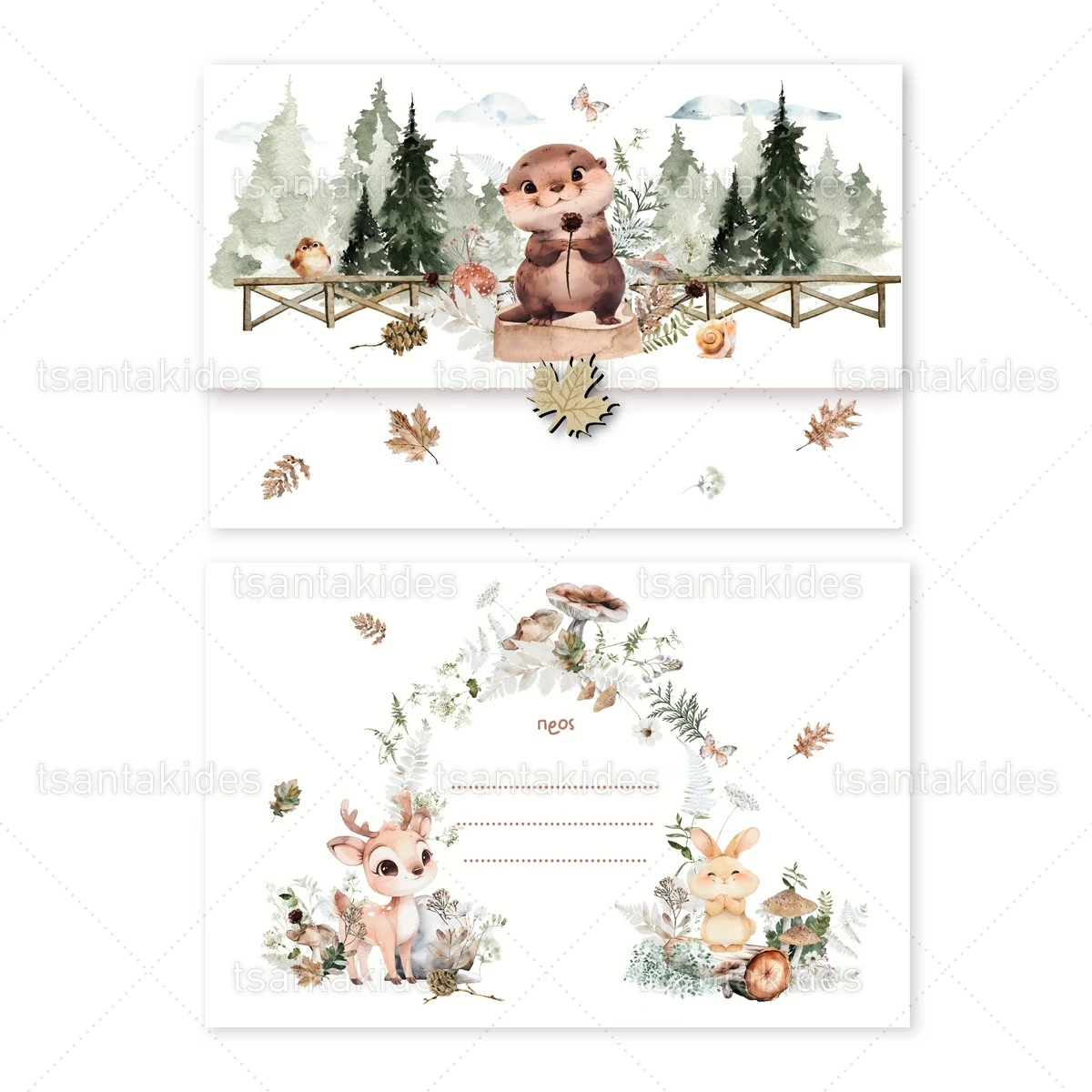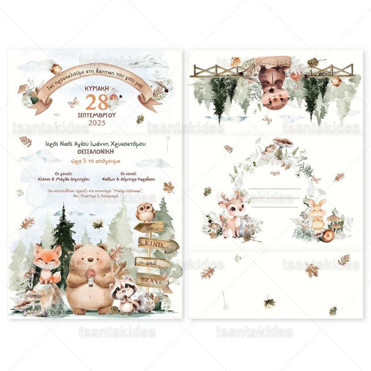 Προσκλητήριο βάπτισης για αγόρι εκτυπωμένο με θέμα Woodland Animals